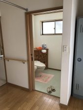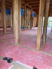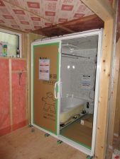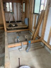 ユニットバスとの内壁にも断熱材を入れていますが、こちらは防音用ではなく、床断熱の為ユニットバスを設置する周りに床下に断熱材を施しましたが、既存の基礎給気口もあり、他と比べて断熱気密をしっかり取る事が出来なかったため、部屋内にも断熱材を施すことにしました。