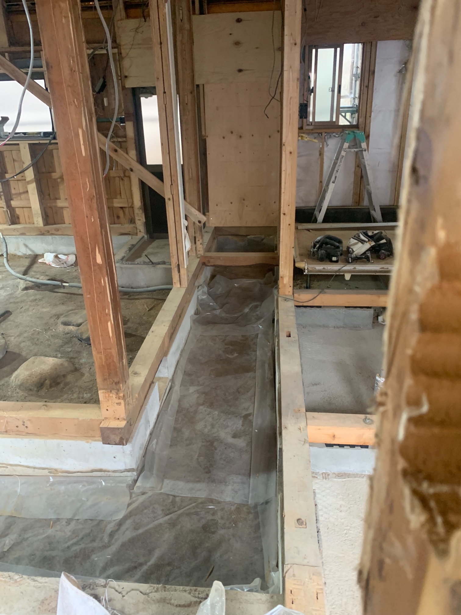 今日の様子をsw辺棟梁の愛弟子k保木君が📸UPしてくれました👍(現場を離れる際には、棟梁にもUPの仕方教えてあげてくださいね)床下の状態は、今まできちんと通気が取れていた様で良好な様子です。以前、リフォームをされたところは、防湿シートやコンクリートが施されています。床下の通気はそのまま確保し、今回は大引き+根太間にダブルで床断熱を施していきます。
