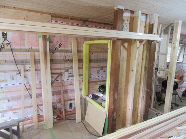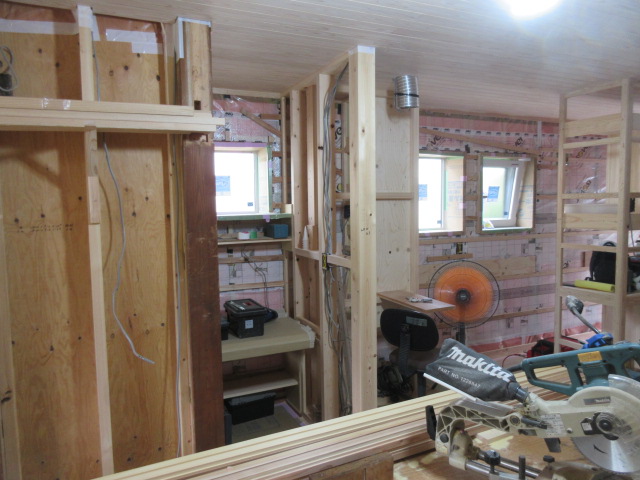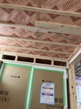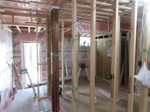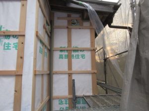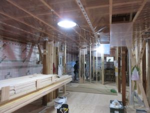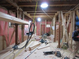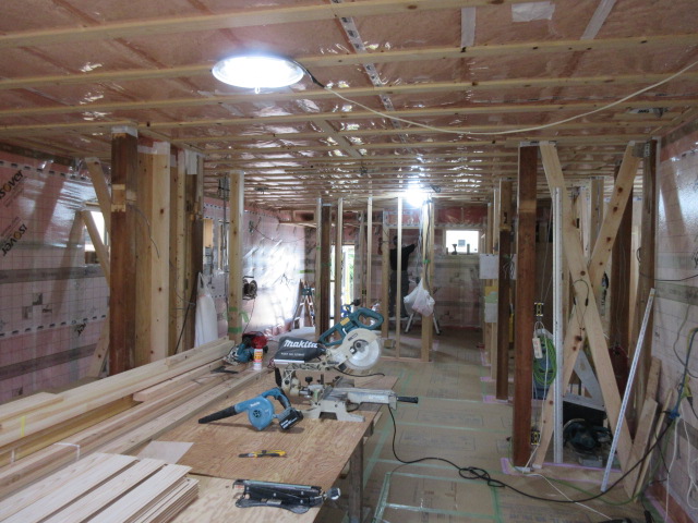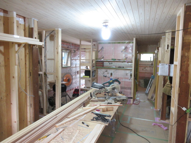 壁プラスターボードを張る前の造作工事が進んでいます。