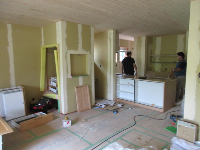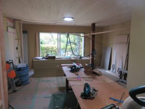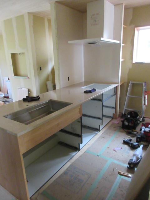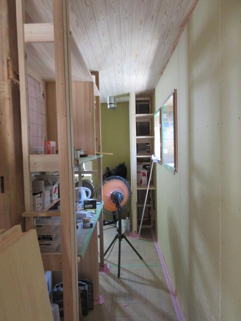キッチンカップボード上の固定棚、仏間の枠や書斎スペースの机や棚などなど。ここまで来たら、終わりが見えてきましたよ~(sw辺棟梁からもまだまだ~と言う声が聞こえそうです)