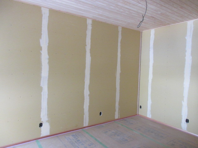 クロス工事が始まりました。仕上げのクロスを貼る前に、パテ処理を行っていきます。お化粧の様にファンデーションがきれいに塗れるように下地を塗るのと一緒です。プラスターボードのジョイント部分など、凹凸が出ない様にしていきます。こちらのi様邸、9月30日~10月9日までの間、完成した様子を見学をさせていただけることになりました。改修工事は、住みながら工事される方が多く、なかなか見学をさせていただけませんので、とても貴重な機会をいただきます。『酷暑』の『残暑』でまだまだ暑い時期となりそうですが、断熱改修や水廻り改修をご計画中の方、是非この機会にミノワのリフォームもご見学ください。
