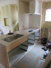 キッチン取付の様子です。ウッドワンの岐阜ショールームに展示されていた商品を今回は納入しました。展示品の為、現場にピッタリと言うわけにはいかない部分もあったり💦良い職人さんで取り付けてあった部材で臨機応変に対応してくださり何とか納まりました。ありがとうございました。
