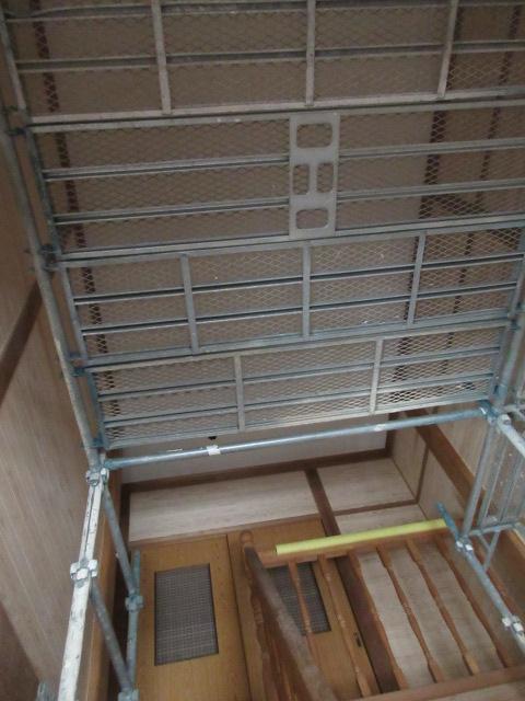 玄関ホールの天井も足場を組んで、クロス貼りです。(ホールから見上げた写真です)