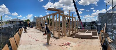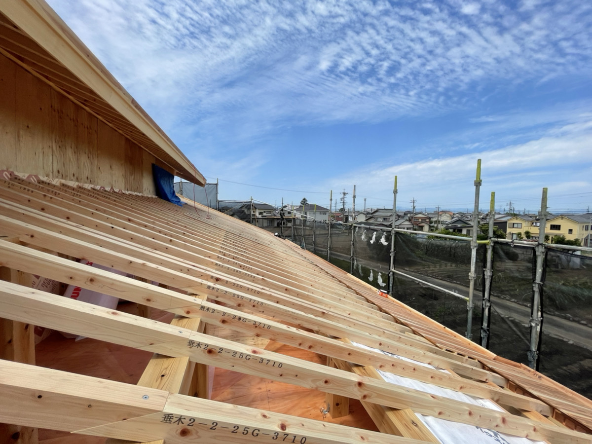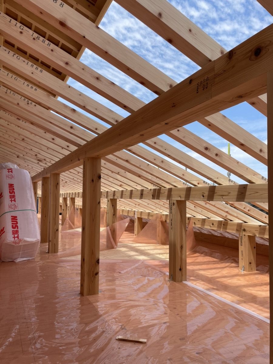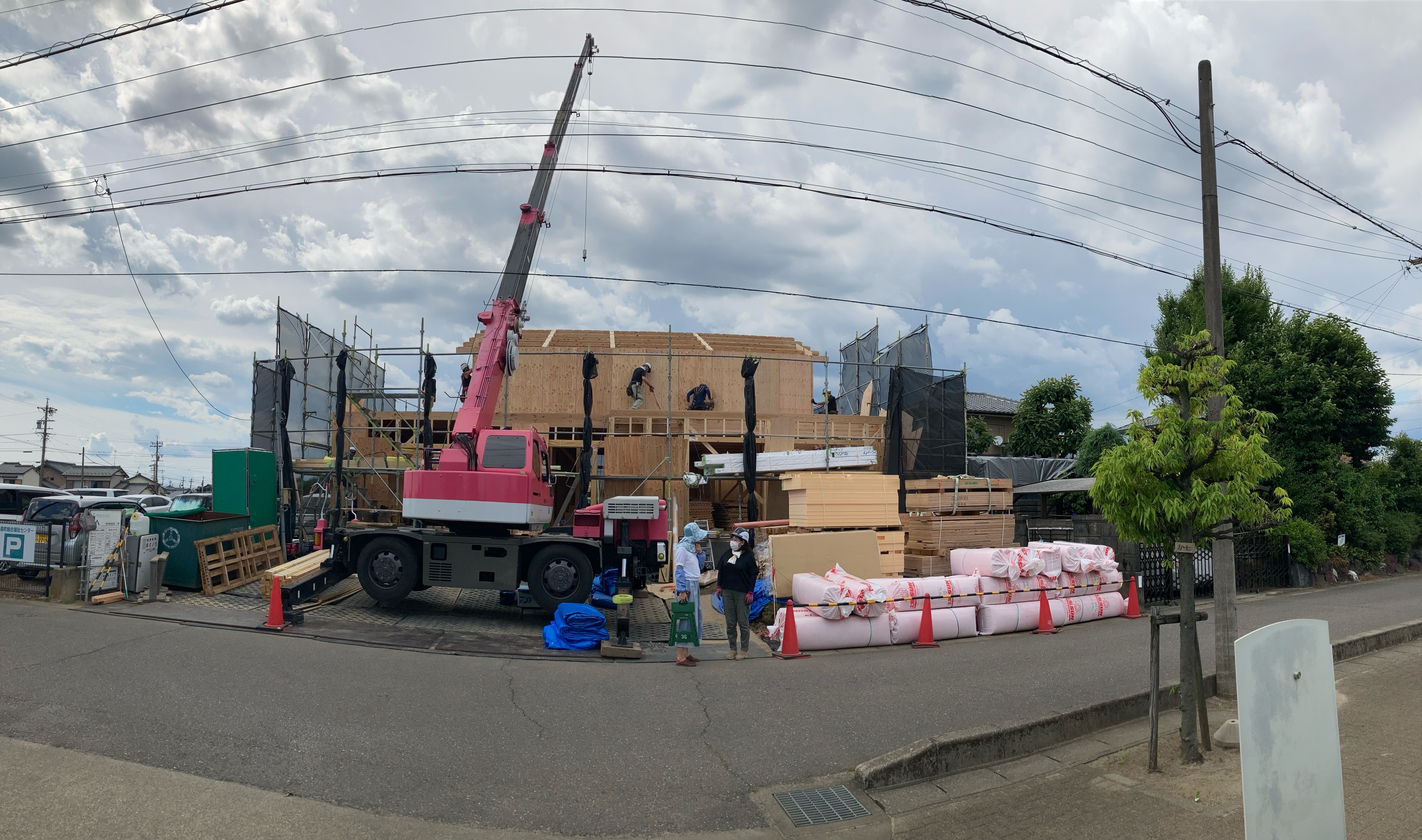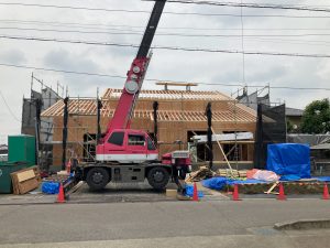 上棟2日目は曇り空で過ごしやすい一日でした。