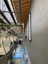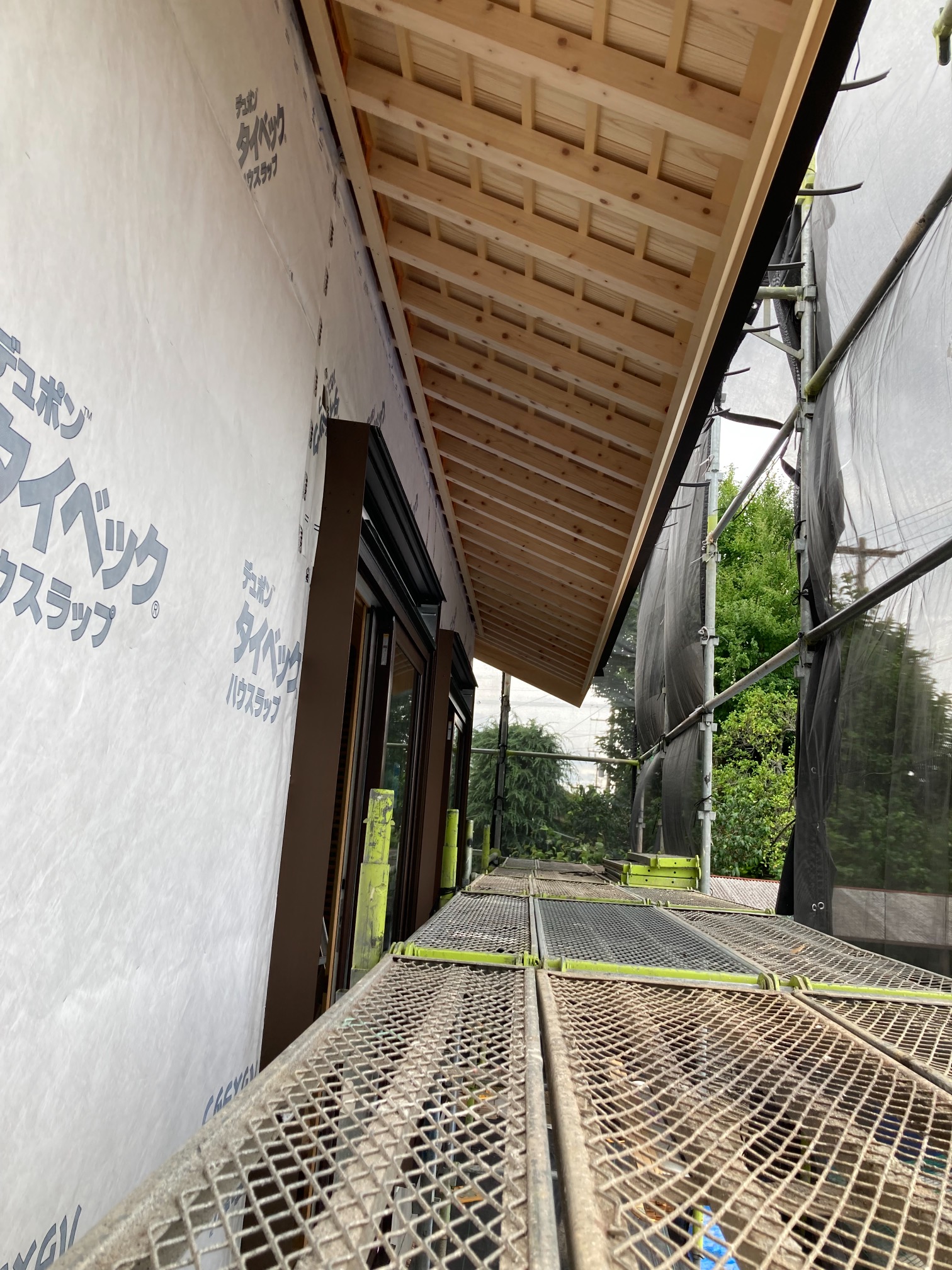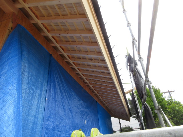化粧軒裏もきれいに仕上がっています。この後屋根はルーフィングの上に瓦下地がつけられます。