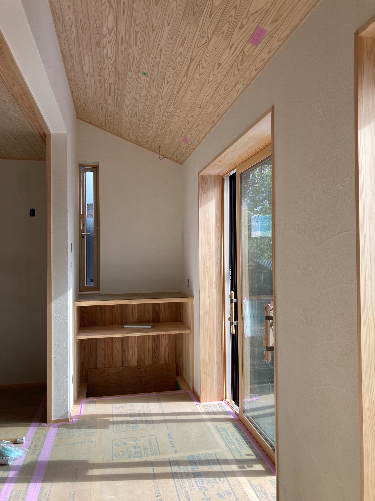 こちらの現場の室内は土壁仕様です。事務所からも近いのでまた見学に行こうと思います。