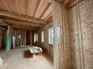室内の外側にも小舞が取り付けられました。電気配線合わせ後、土壁へと進みます。