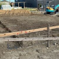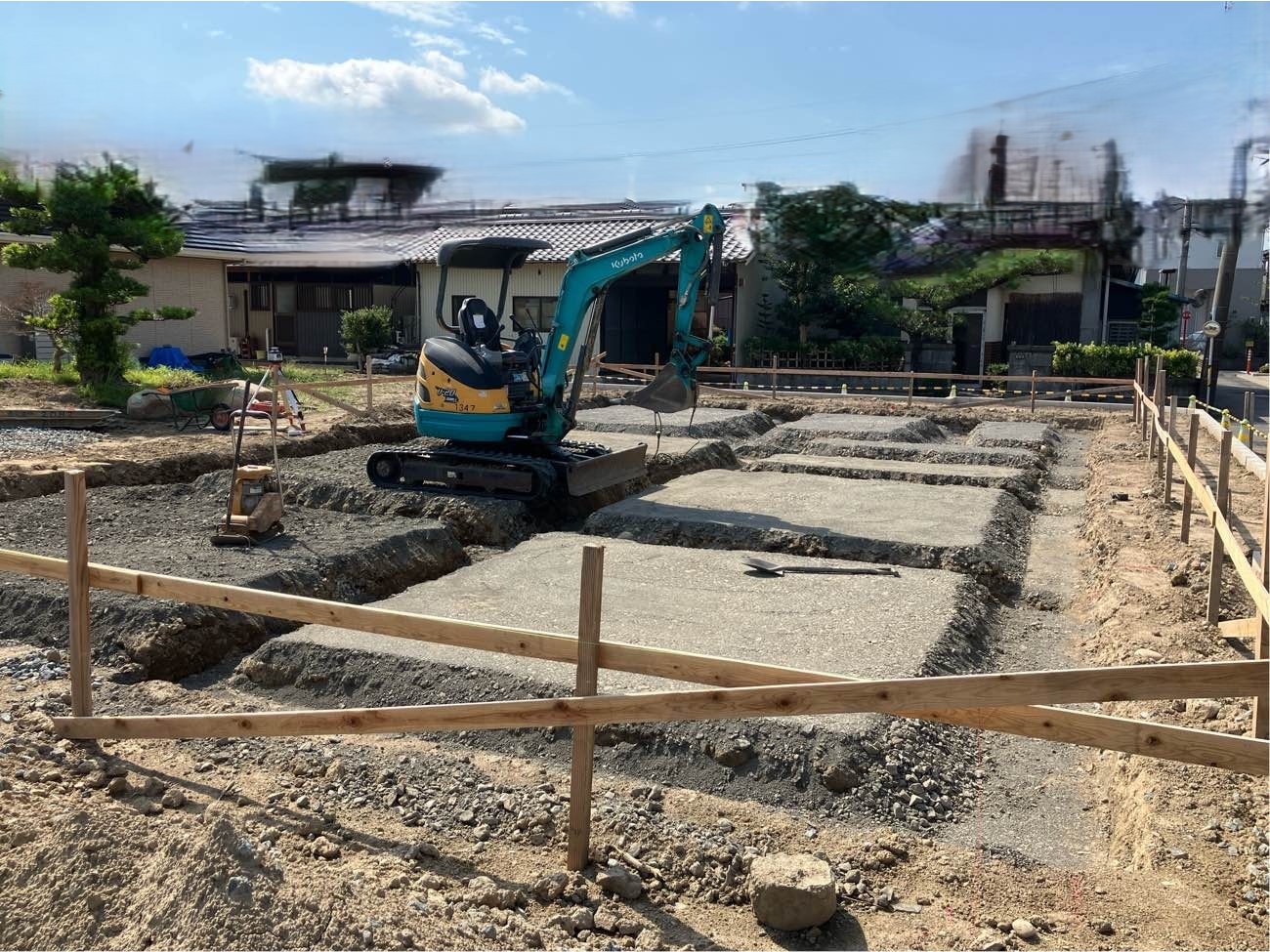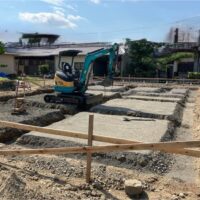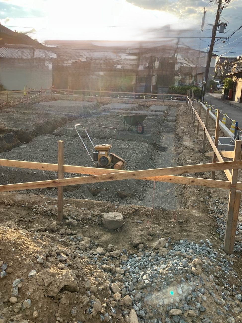 お彼岸が過ぎ、暑さが落ち着きましたが、また熱帯低気圧の加減で湿度が戻ってきている中、t広さんが基礎工事を進めています。掘削、砕石敷き、締固めをしている様子です。