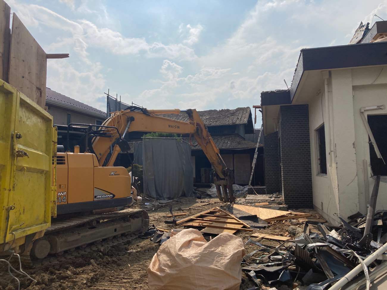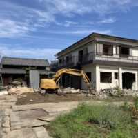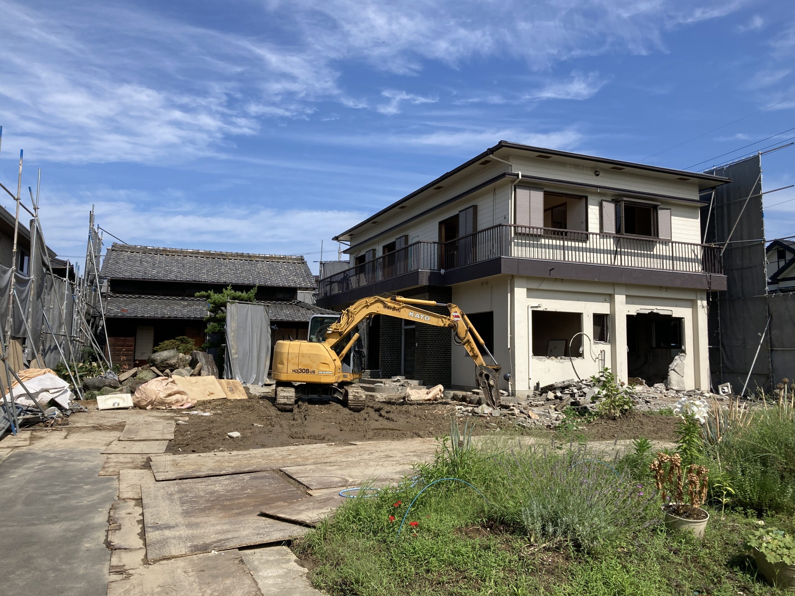 母屋の2階木造部分が解体されています。RC造の部分は、大変そうです💦解体作業は、埃も舞うので小雨が降るといいですが、昨日梅雨明けしてしまいました・・・最近は、梅雨もしとしと雨ではなく豪雨なので、なかなか解体作業にいい良い季節はなさそうです。