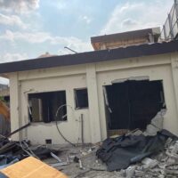 既設のドウダンツツジを非難させて、9日から解体工事が始まっています。手前の倉庫は早々に取り壊されました。
