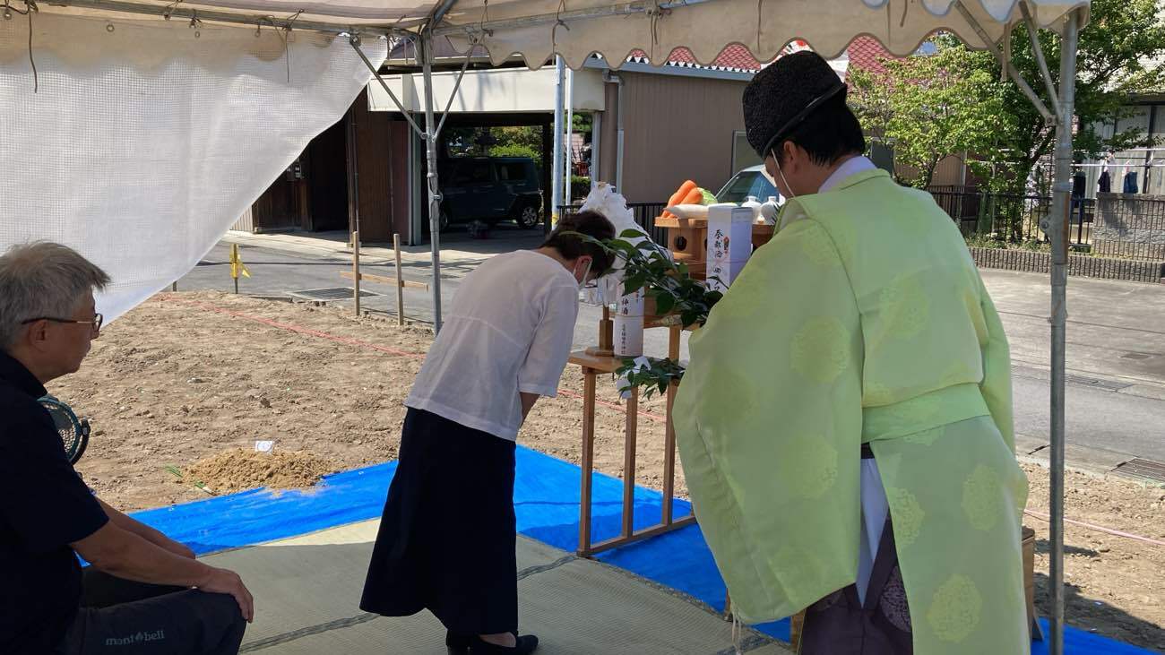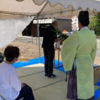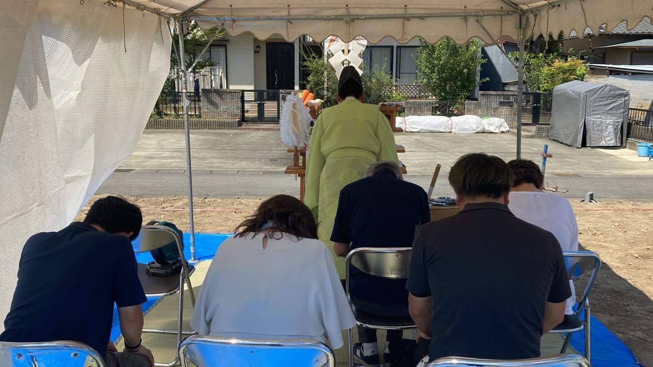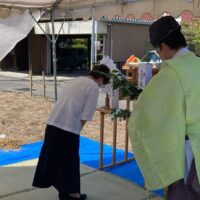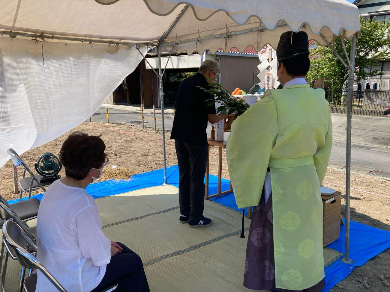 昨日、暑~い昼間の炎天下の中、地鎮祭を行いました。解体工事も無事に完了し、いよいよ新しい家を建てていく工程になります!新築工事も最後まで無事に、a様に満足いただける家が建ちますように。
