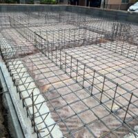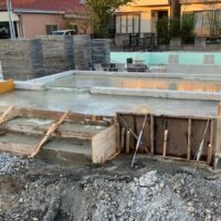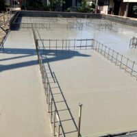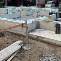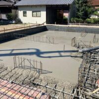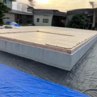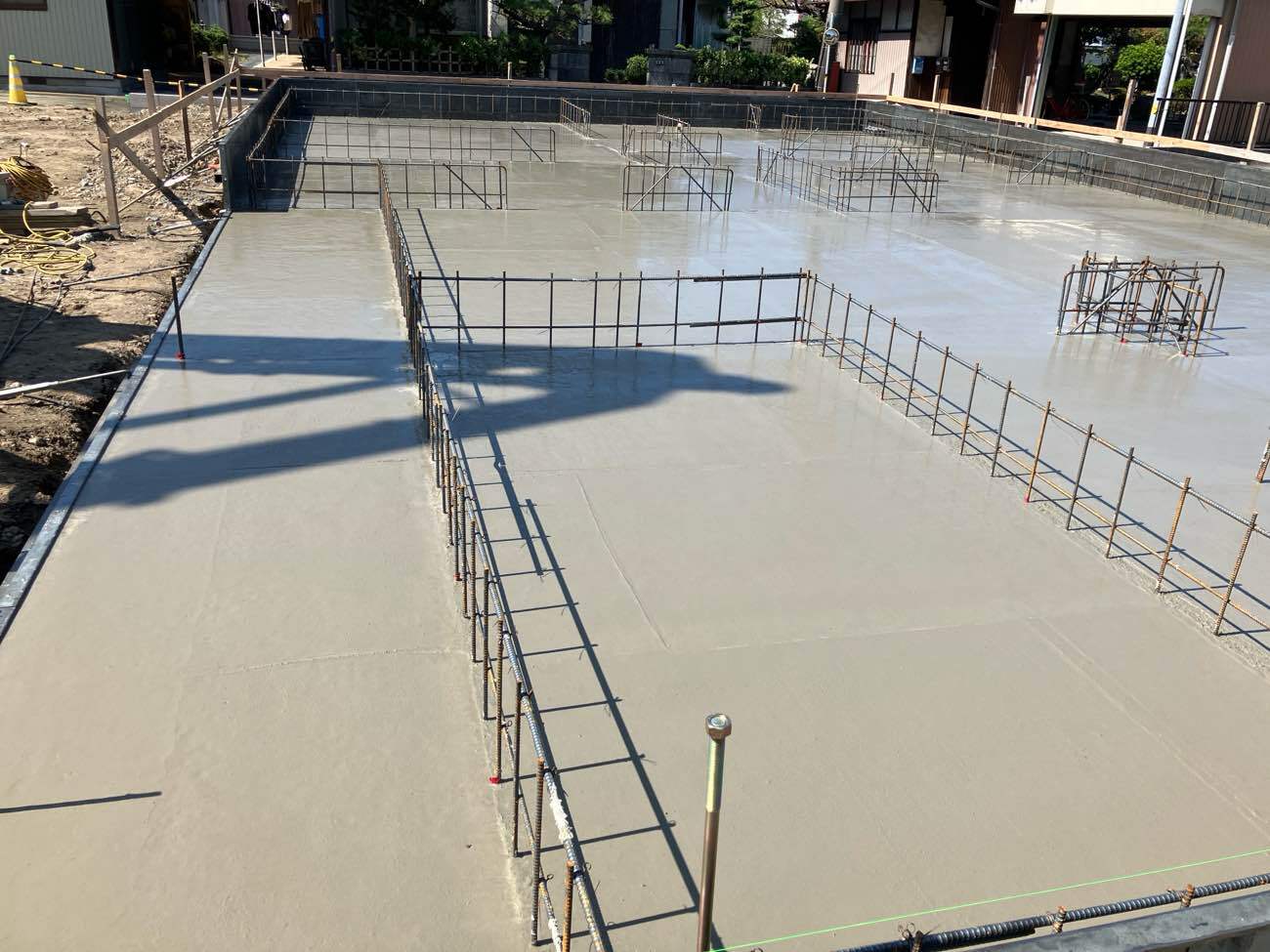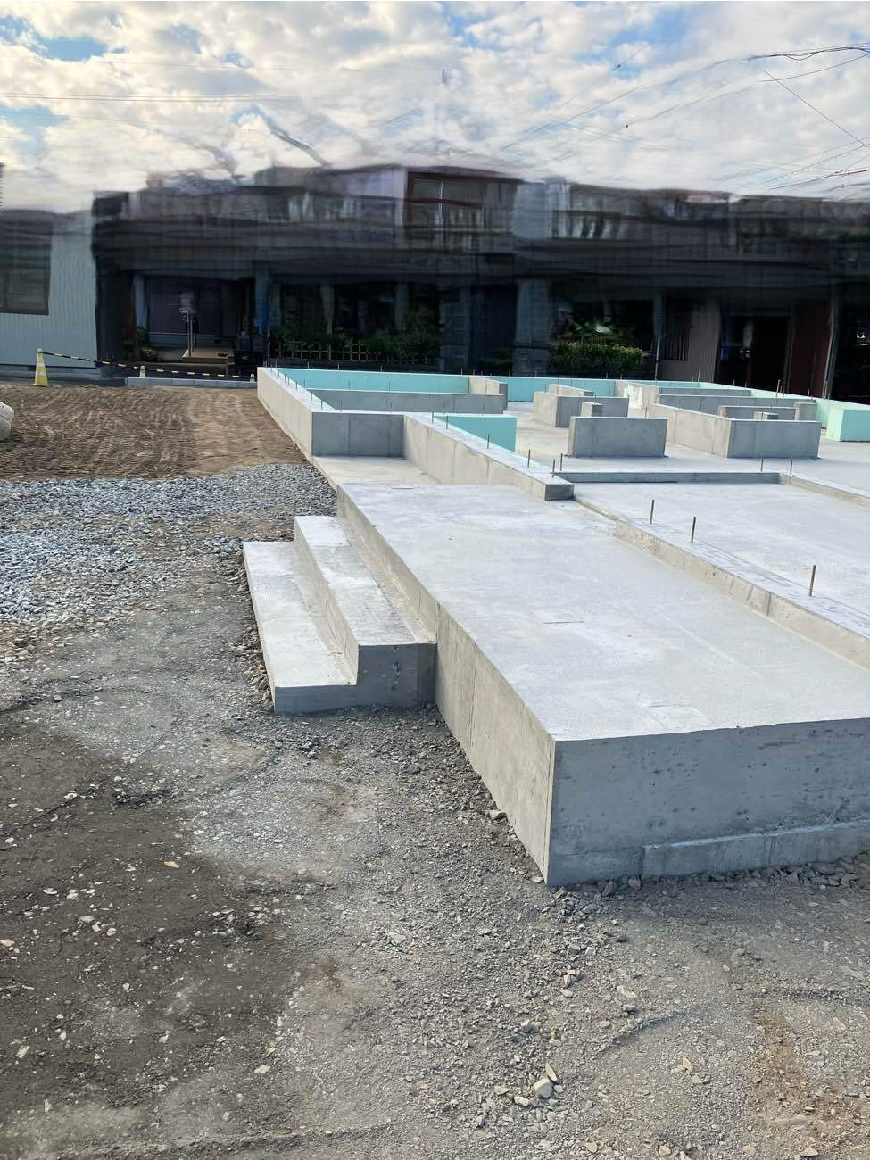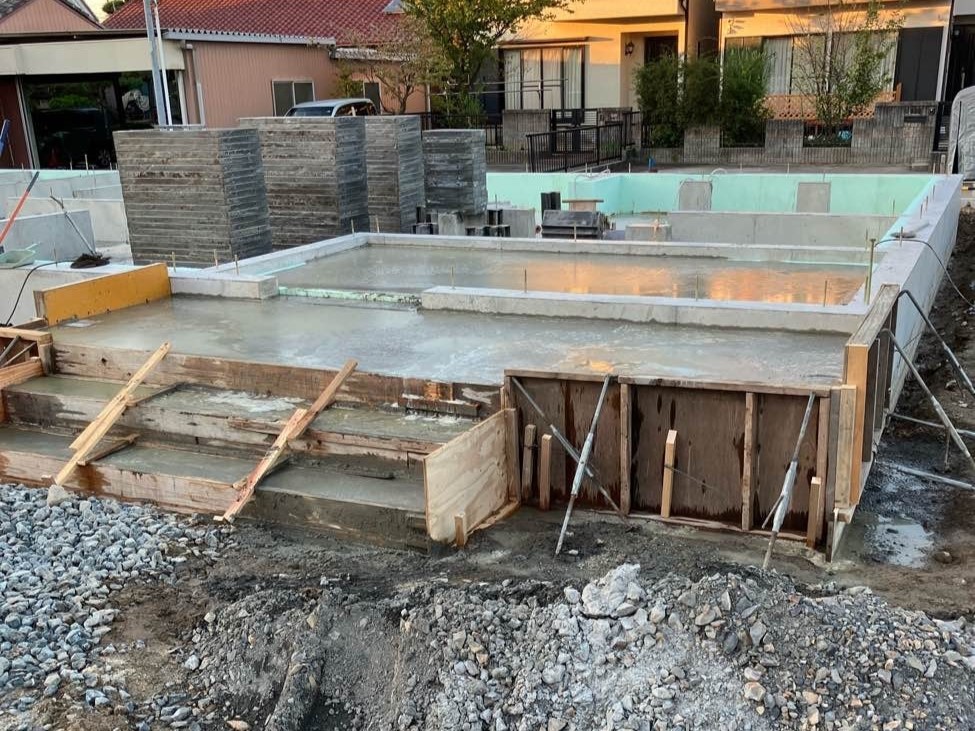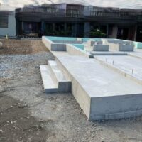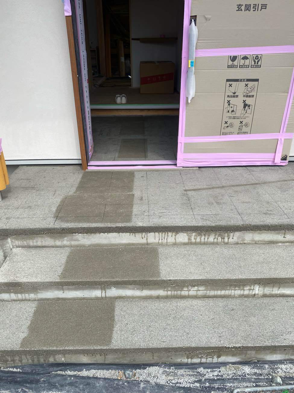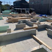 型枠を外し、玄関ポーチと階段のコンクリート下地の施工も完了しました。23日の上棟に向けて来週は土台伏せを行います。