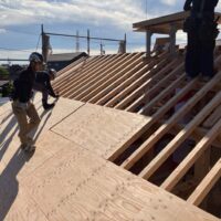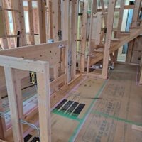 最後に24㎜に剛床を敷き込み終了です。来週の23日が棟上げです。明日土曜日に寒冷前線が通過して、一時期的に寒くなると言われていますので、a様、大工さん達、体に気を付けて23日を元気に迎えてください。よろしくお願いいたします。