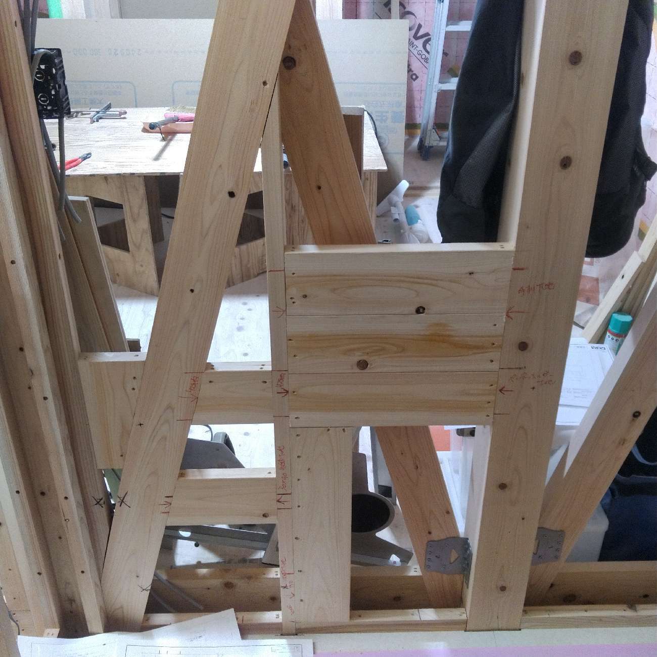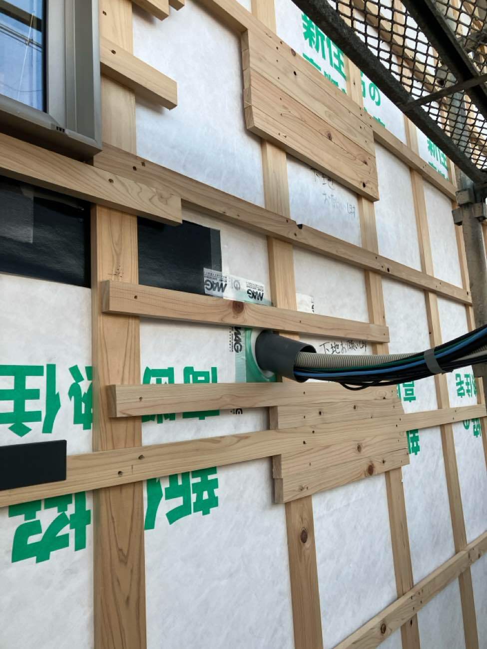 先週は、主にh典棟梁は外部を攻めていた様子です。通気胴縁と外壁下地材を施工しました。間隔が均等で、下地で隠れてしまうのにとてもきれいです👍縦が通気胴縁で、この胴縁の厚み分の隙間を通気させています。