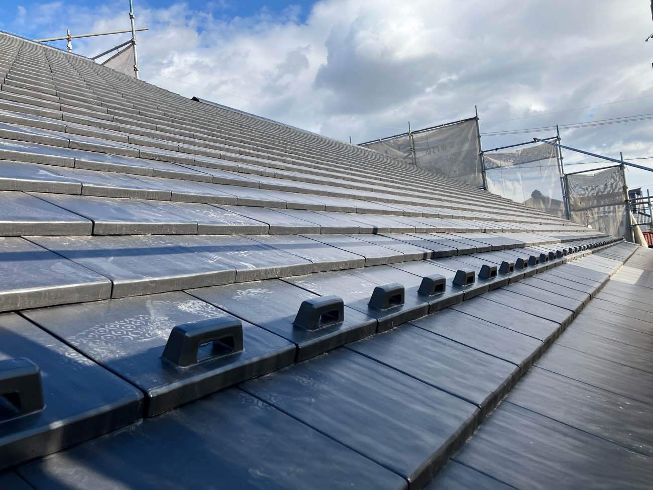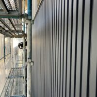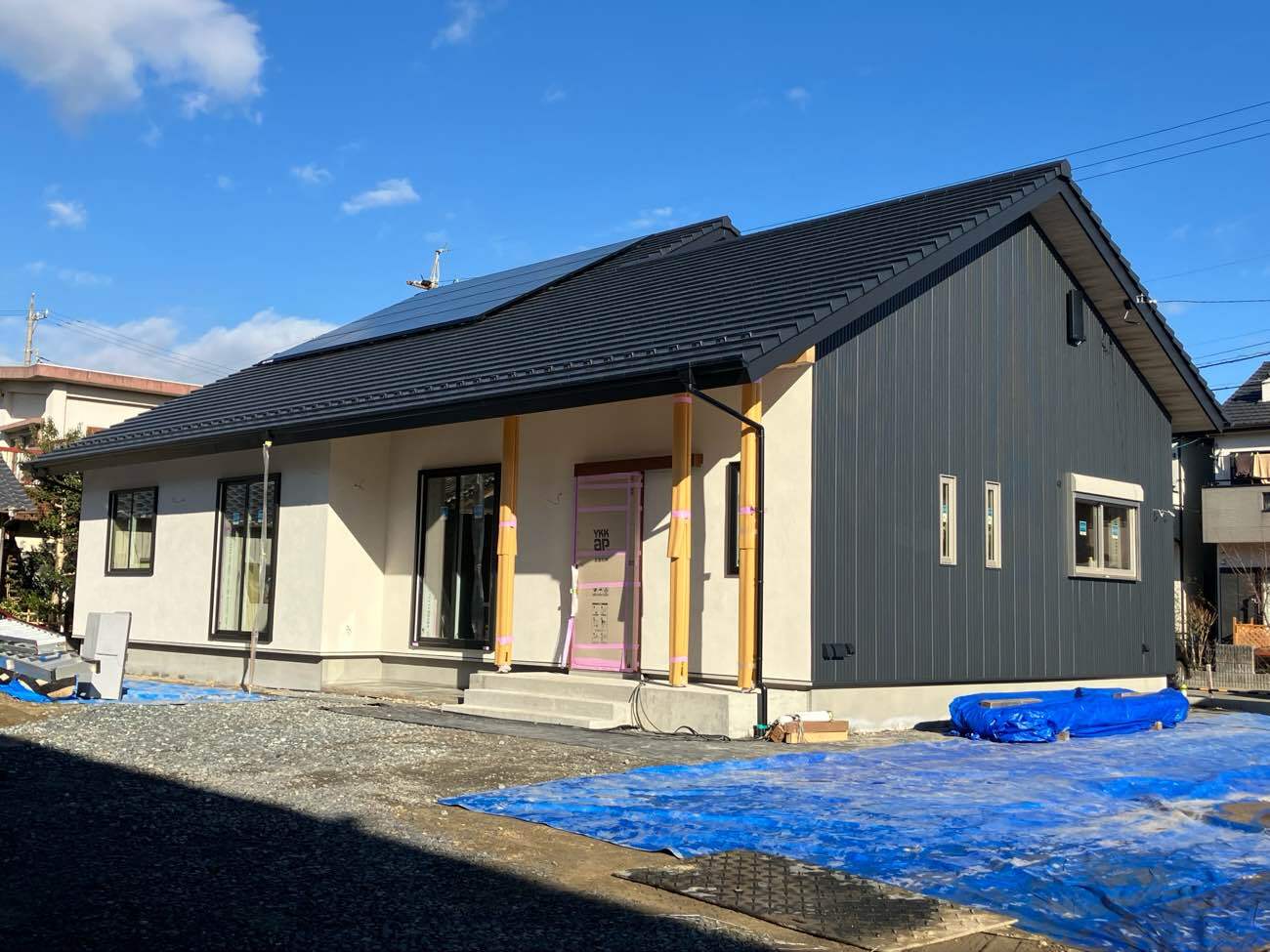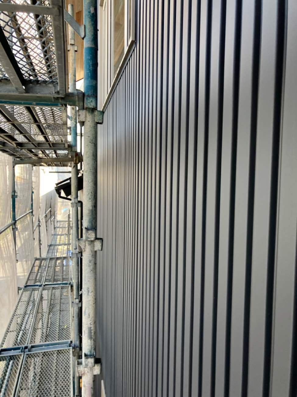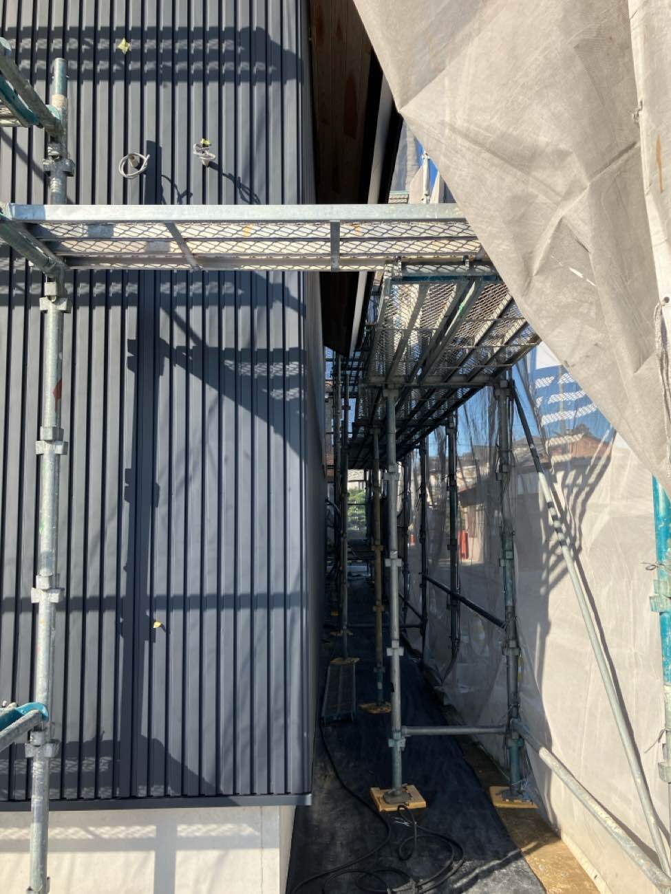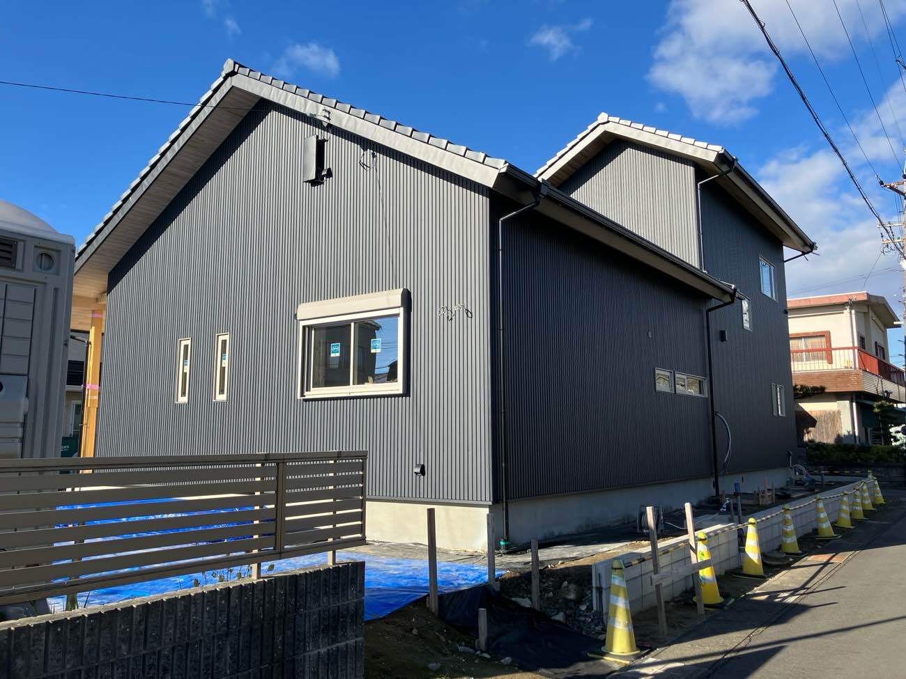 外部は、瓦を葺き終えて、外壁はガルバリウム鋼板を張り終えました。