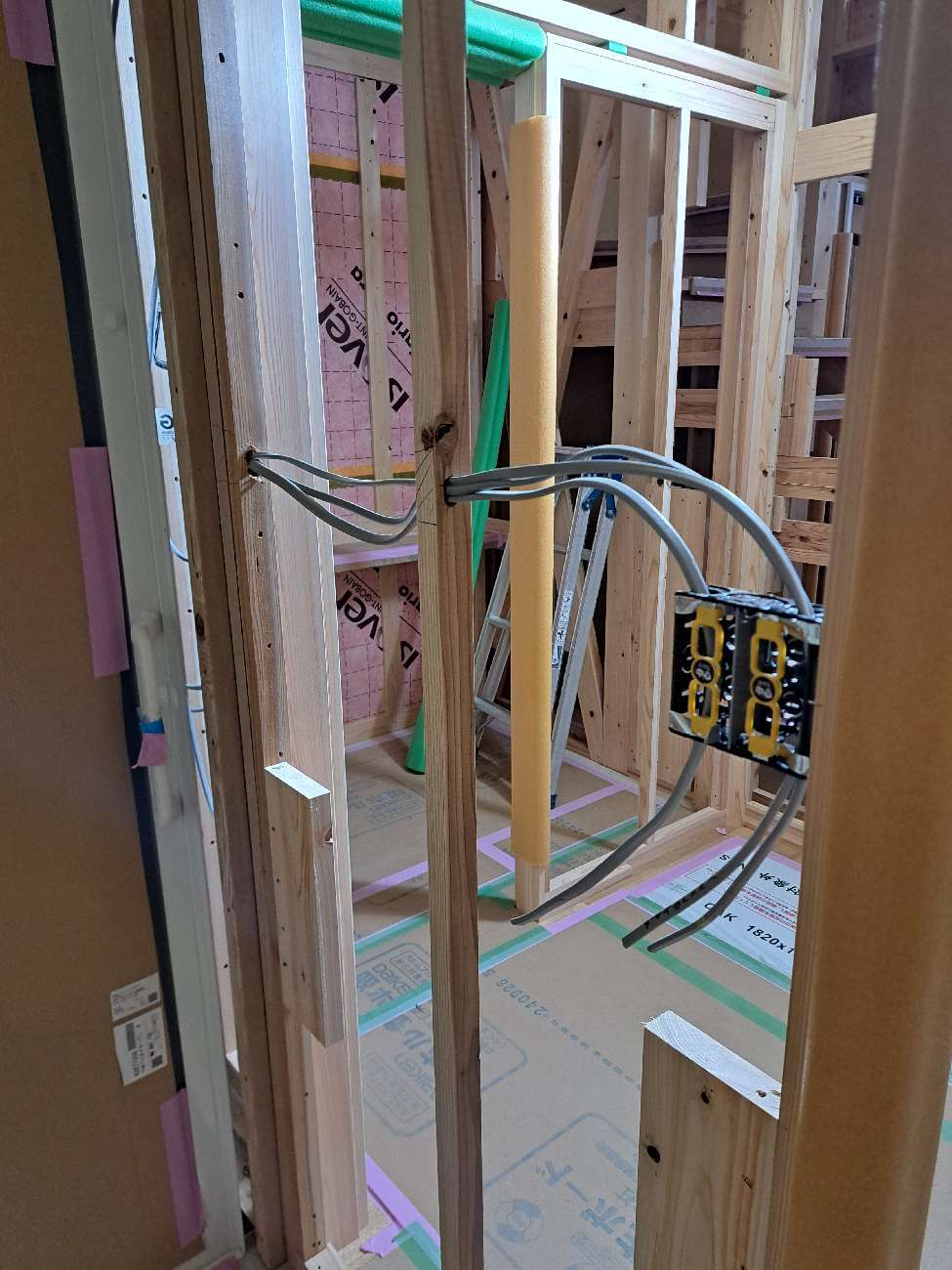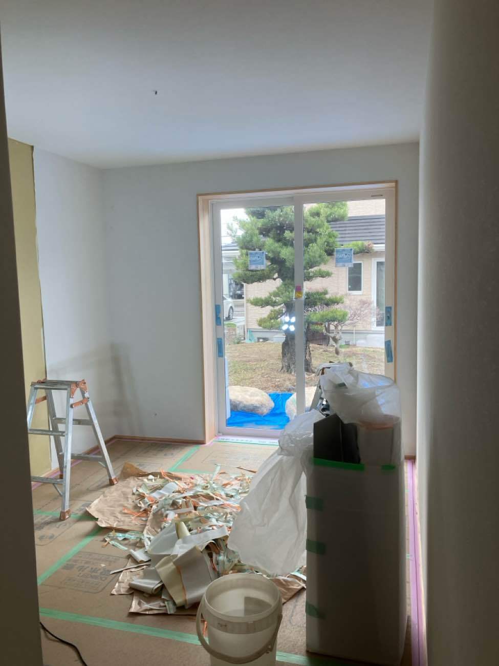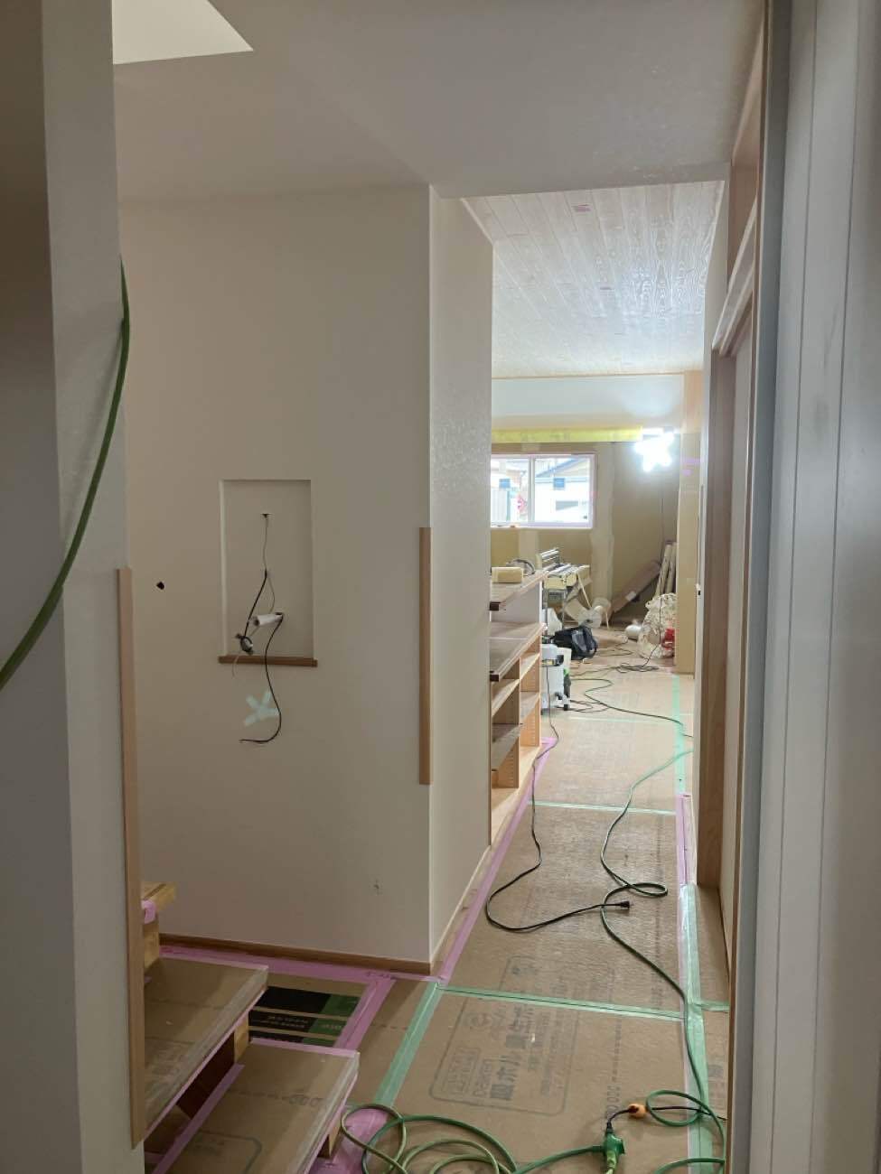 クロス工事が随分進み、明るくなってきました。目移りする量のクロスの中から、いろいろ迷われた末、シンブルなクロスを選ばれました。無垢の木が映えるクロス。いい感じですね👍クロスを貼ったら見えてきた、コーナーの角当ての木。伊礼智さんと言う建築家の家でよく見かけます。実用性もあり木がお好きな方はちょっとしたアクセントにもなり、いいアイディアです。