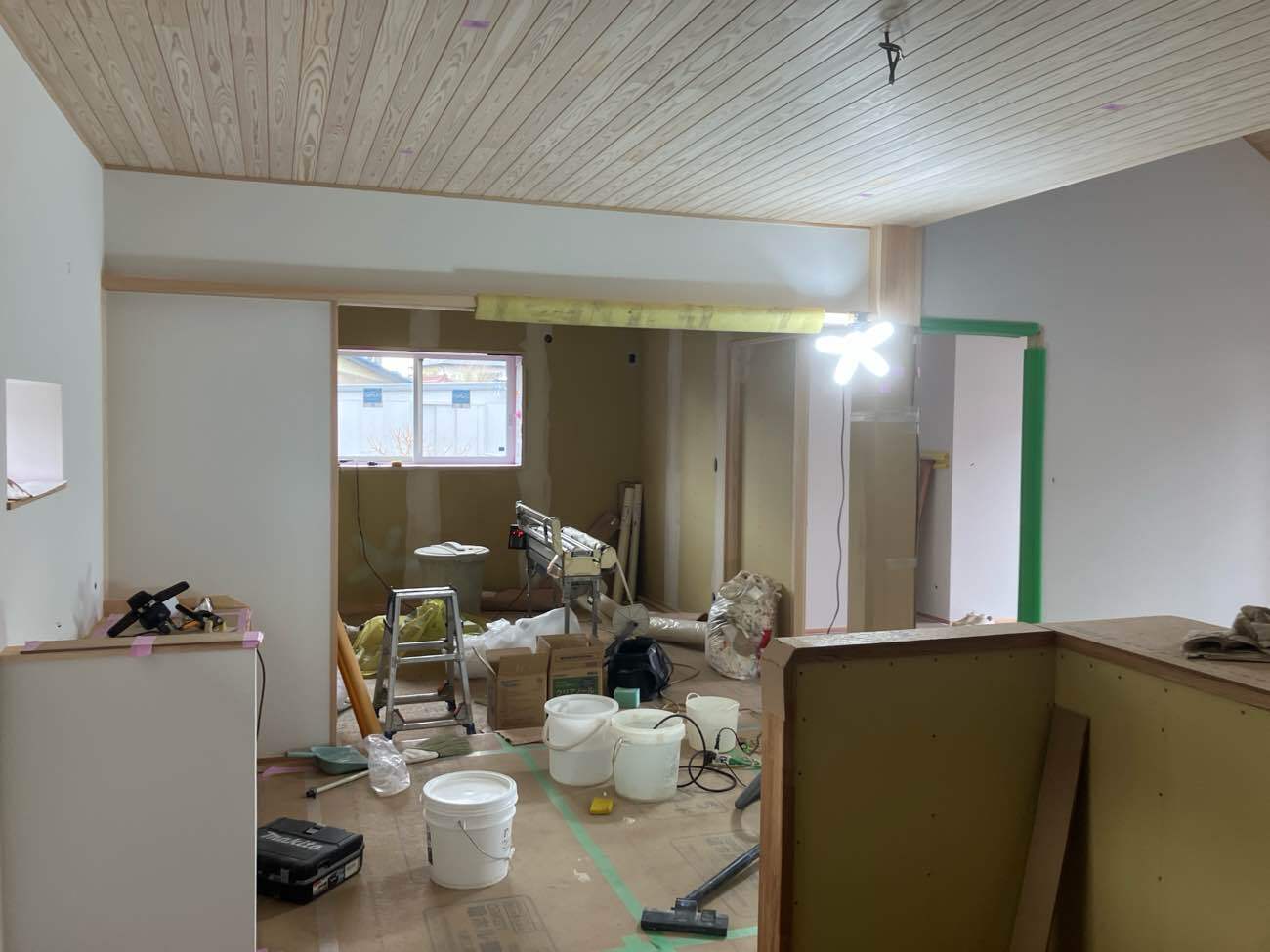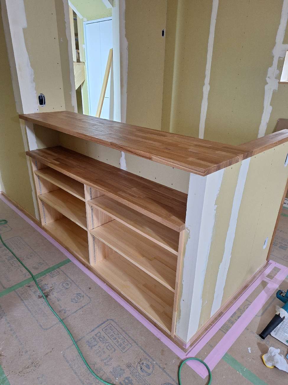 内部は、h典棟梁とk池大棟梁によって造作工事が大詰めを迎えている様子です。キッチンの造作カウンターも形になってきましたよ。完成見学会も4月に予定しています。あと少しですね!楽しみ。