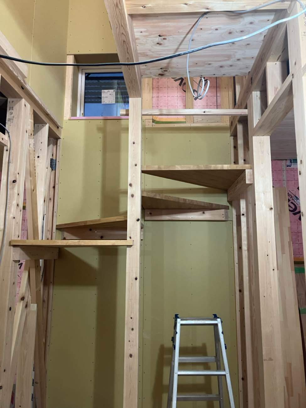 回り階段も架け終えました。これで、a様も少し安心して2階をご見学いただけそうです。