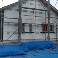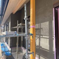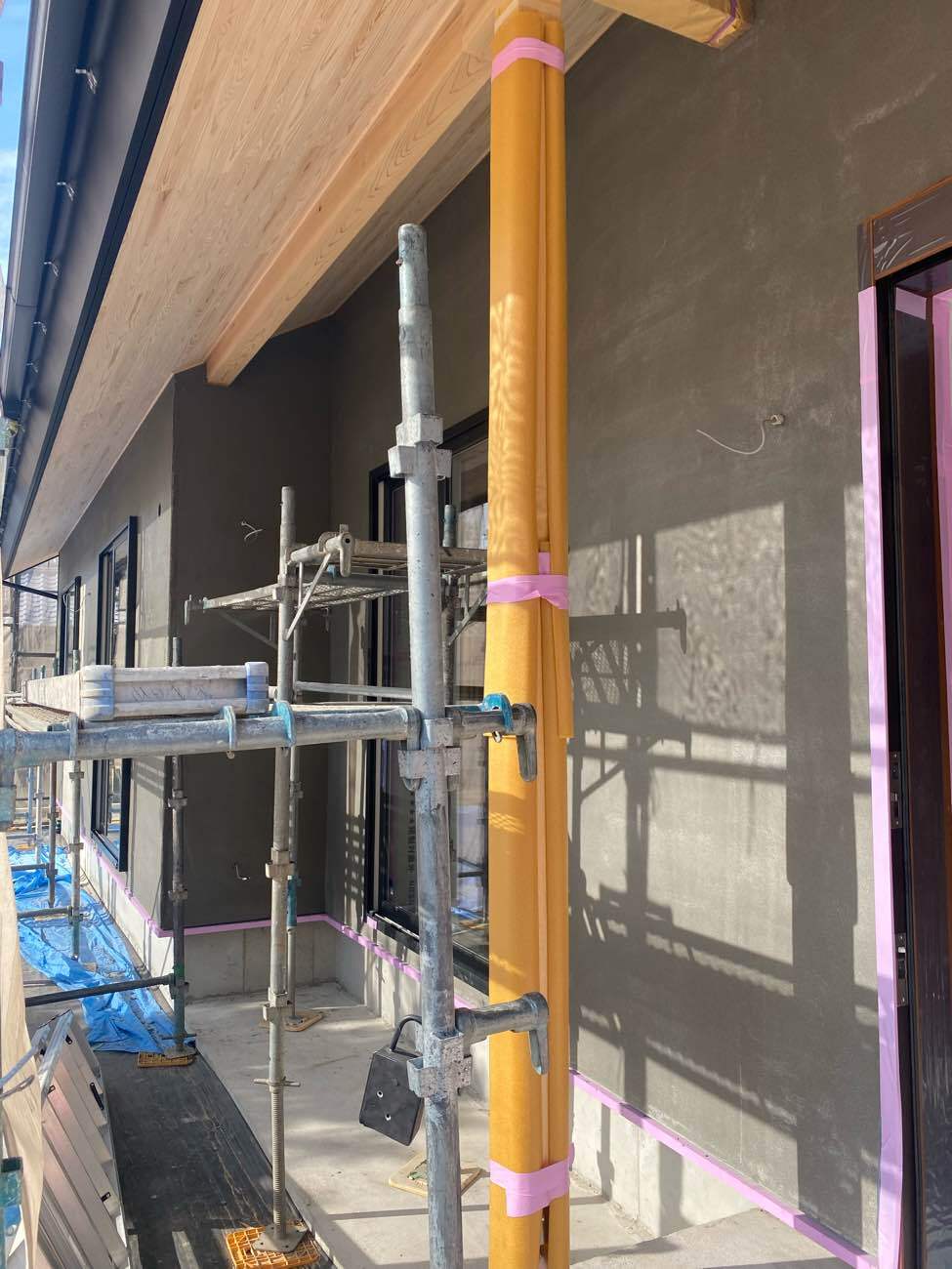 外部は、塗り仕上げの下地処理が行われました。仕上がりが楽しみです。