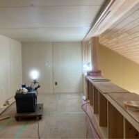 2階のロフト空間は、今回はシナベニヤを張っています。