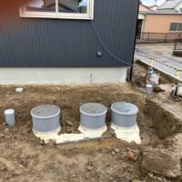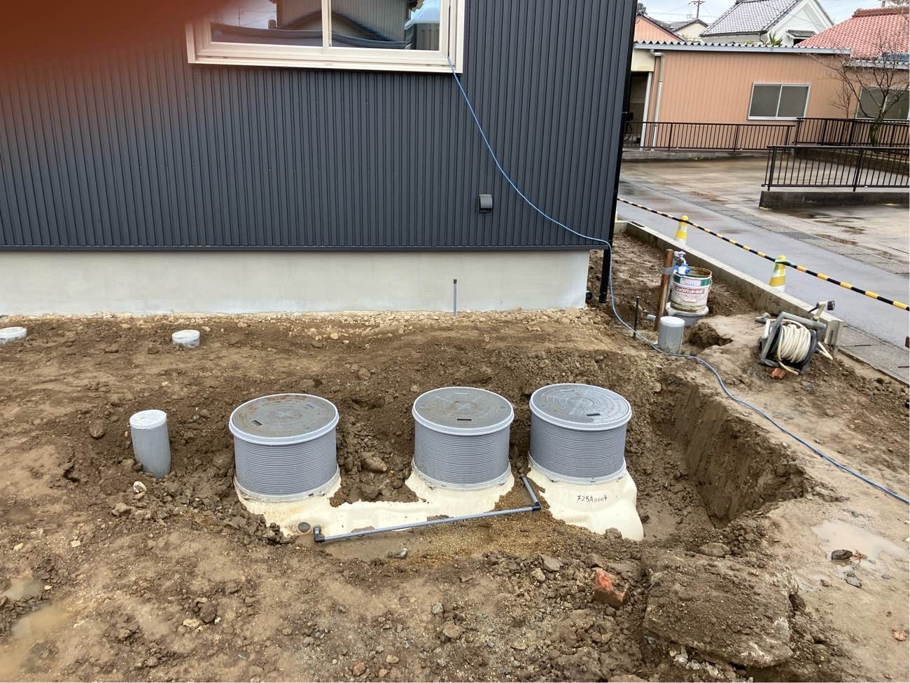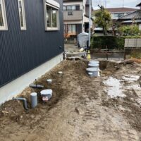 外部は、給排水管工事がJサービスさんによって行われています。合併浄化槽が設置されました。北名古屋市は企業が少ないので税収が少なく名鉄も通っていることから、市街化区域でも下水道が整備されていないところが多いです😢早く下水来て欲しい・・・市民の切実な思いです。名古屋市と合併して欲しいですよね~