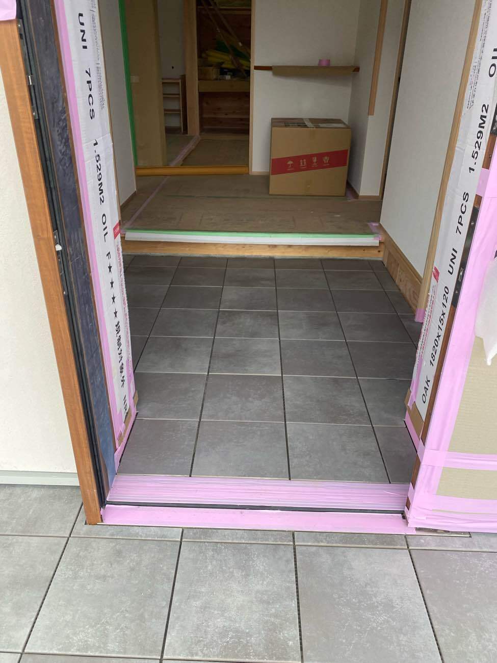 y口技研さんによる玄関とポーチのタイル工事も進んでいます。