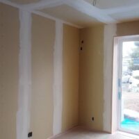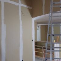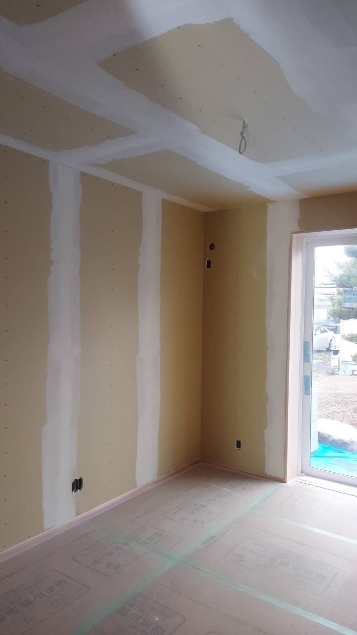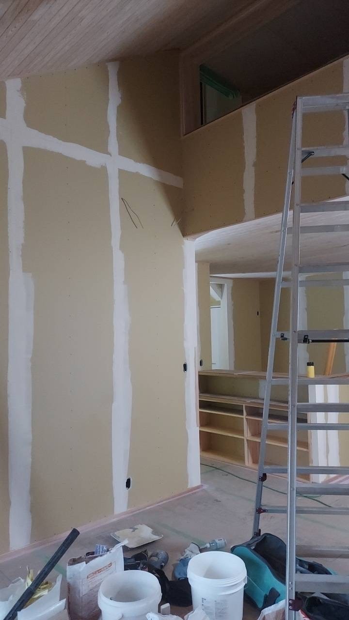 今はクロス工事を行っています。プラスターボードの突合せ部分をパテ処理した様子です。化粧と一緒でベースが大切です👍