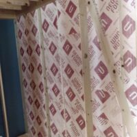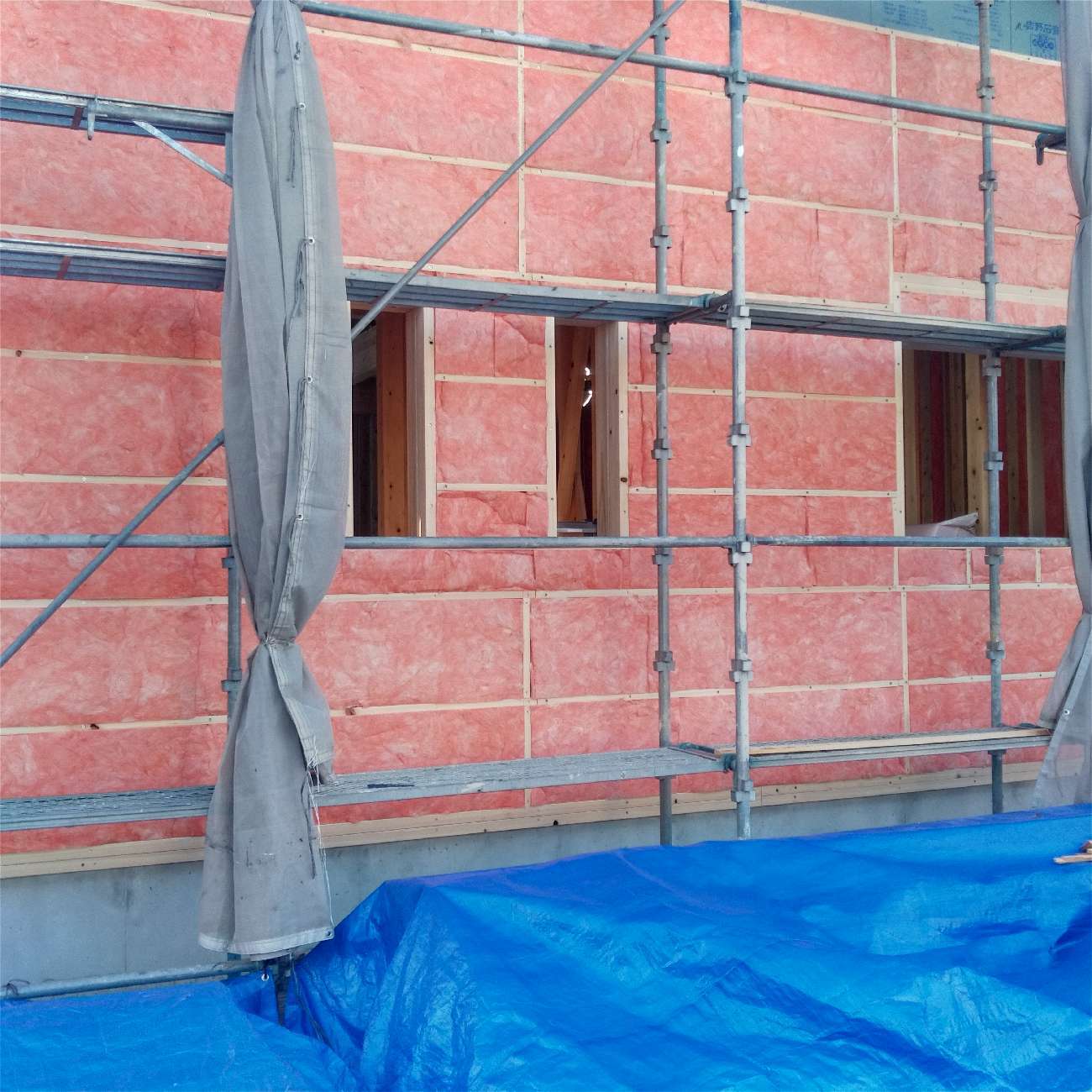 断熱材のグラスウールを入れ終わったら、雨仕舞の為にすぐに透湿防水シートを張りますので、先ほどのグラスウールを入れている様子をご紹介できるのは、ごく稀なのです。