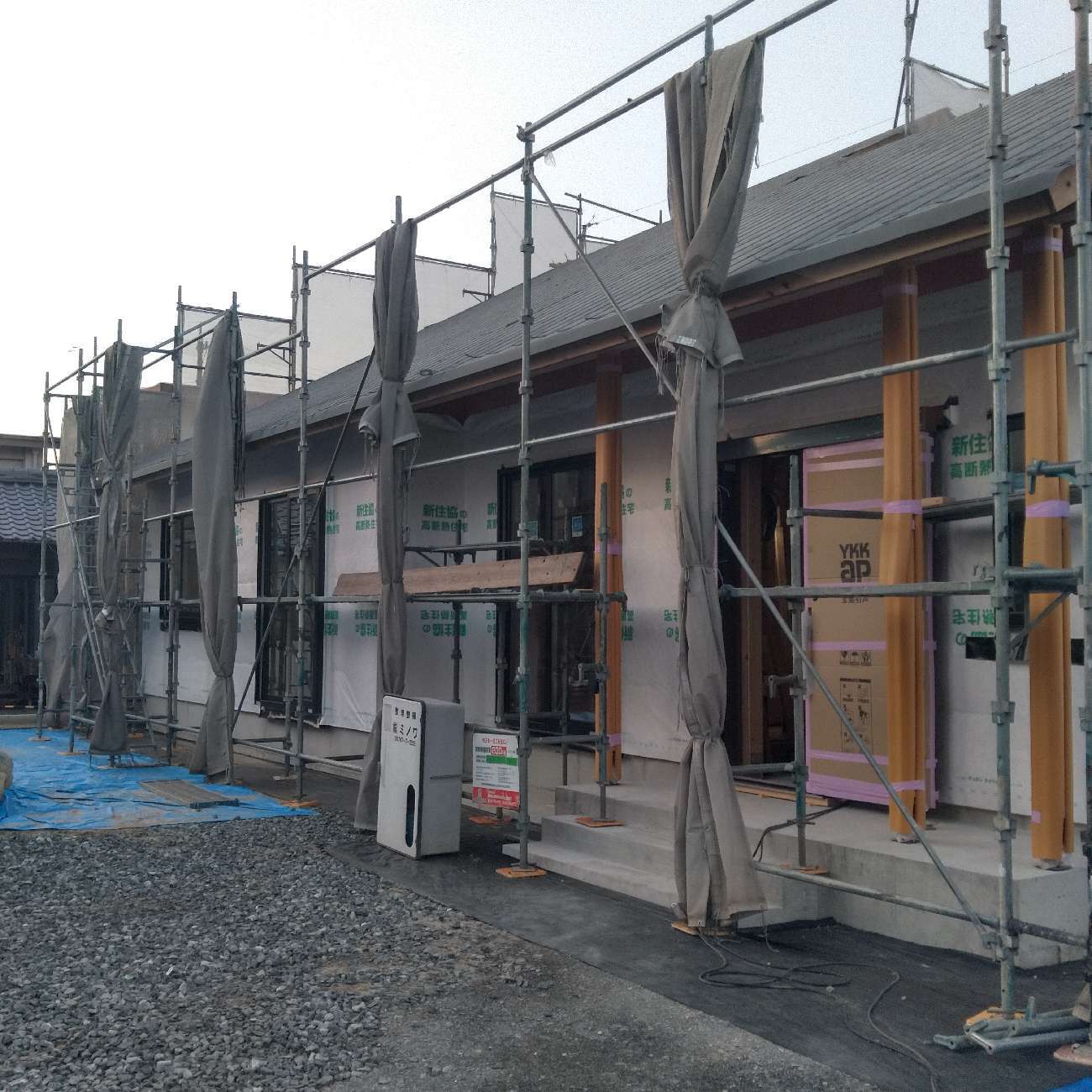 23日予定していました建て方を、天気の都合で昨日行いました。動きやすい曇り空は、作業する大工さん達にとっては一番の建て方日和と言えます👍