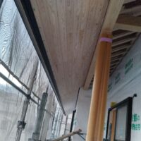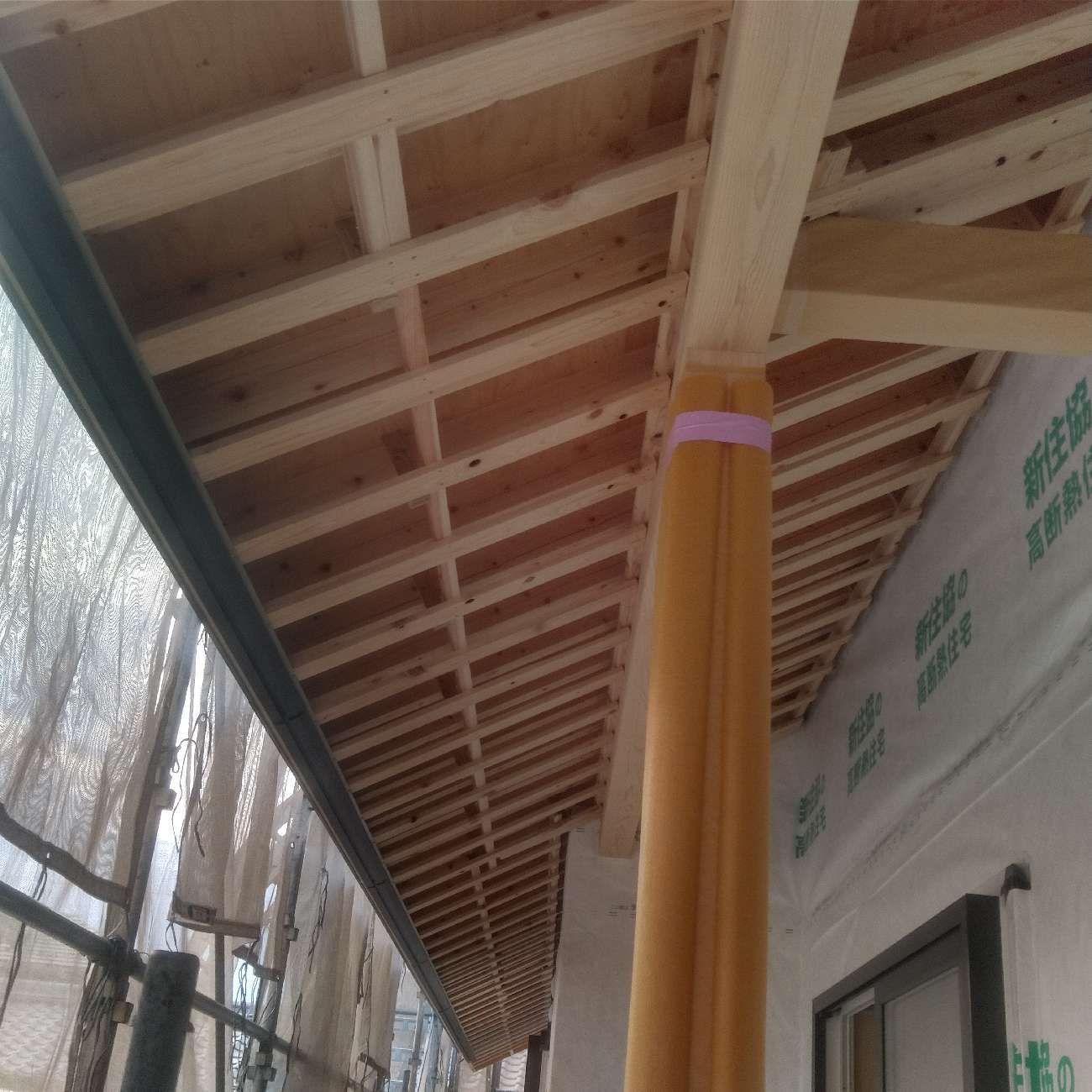 軒裏の下地も取り付けられました。今日は、内部で棚の最終打合せをさせていただいています。