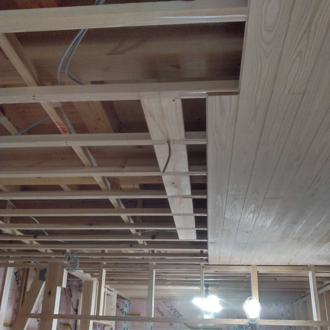 内部は、天井下地入れに取り掛かりました。k池大棟梁も加わって、スピードUP中💦なんだか、あっという間に完成しそうな気がします。