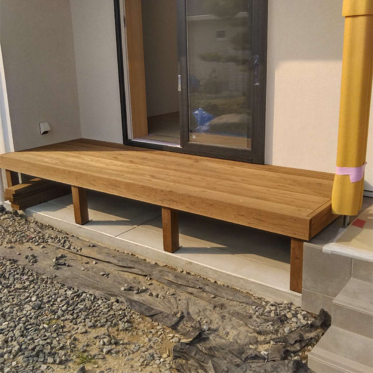 h典棟梁が、最後の仕上げ、ウッドデッキを施工しに来ました。その他『ホシ姫サマ』や手すりなども取り付けてくれました。来週クリーニングを行い、a様のご厚意により4月5日㈯・6日㈰に見学会を開催いたします。外の気温が暖かくなってしまったので、高断熱高気密の家の良さを体感していただけないかも知れませんが、h典棟梁とk池大棟梁はじめ、多くの職人さんの丁寧な仕事ぶりを是非見にご来場ください。お待ちしております!