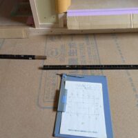 t澤畳店さんが、畳の寸法を取りにみえました。畳は規格のサイズを入れていると思われがちですが、毎回現地の寸法に合わせて作ります。最後にピッタリ納まるところを見ると気持ちがいいんですよね。
