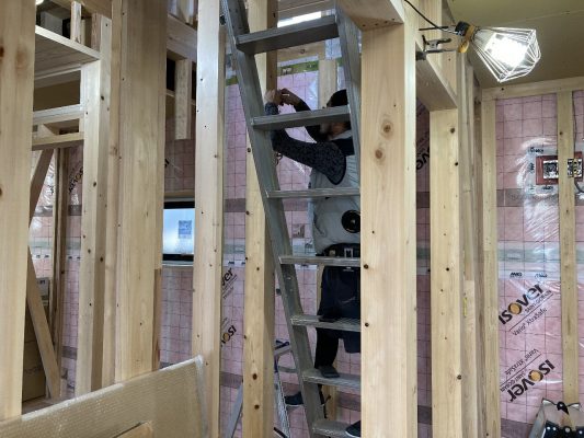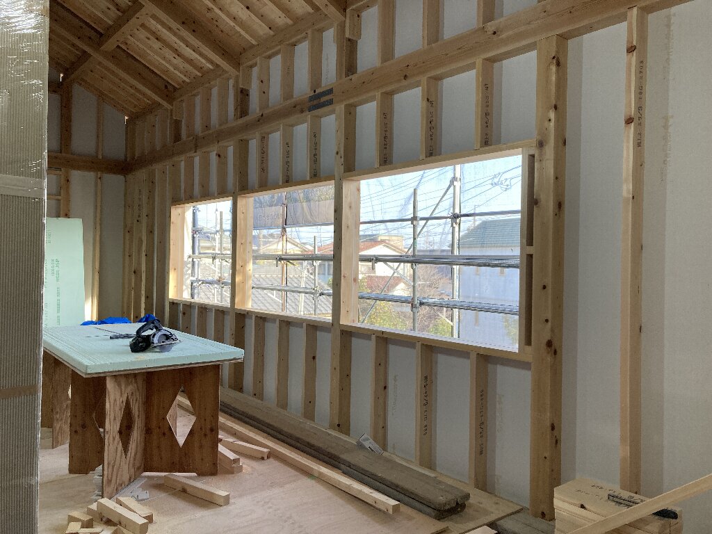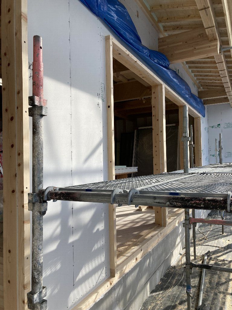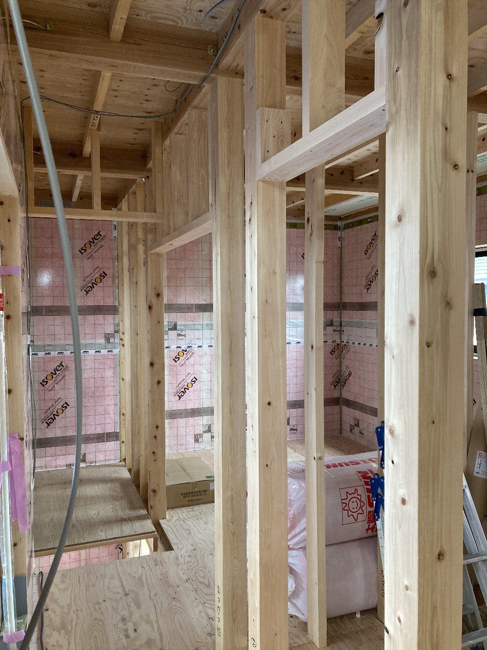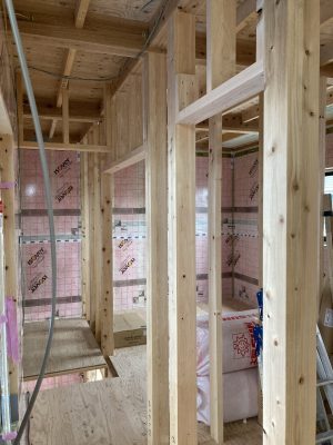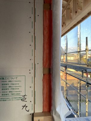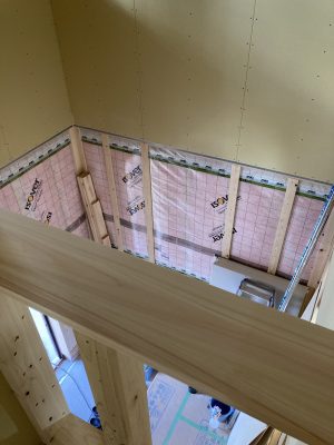s井棟梁は、付加断熱下地+付加断熱入れを行っています。残りインナーバルコニーと1階南面。あとちょっとです。