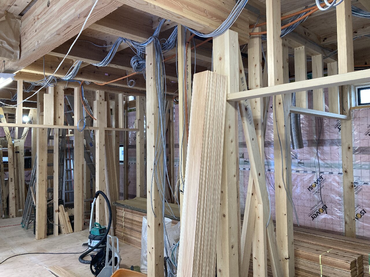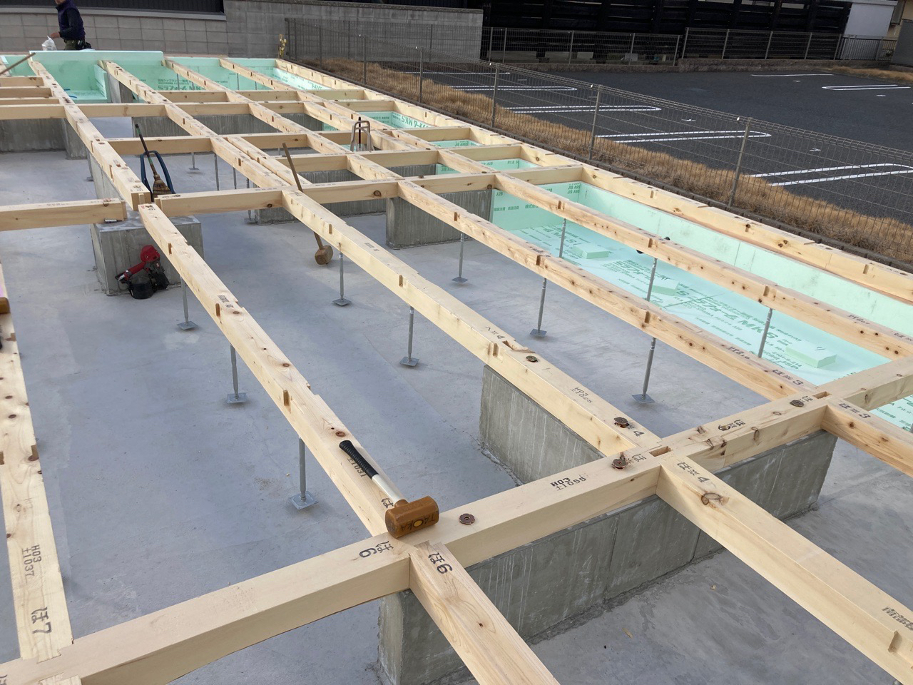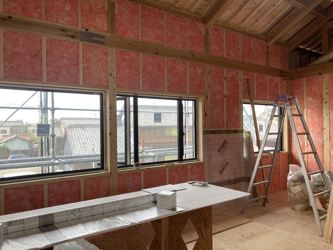 s井棟梁は、付加断熱下地+付加断熱入れを行っています。残りインナーバルコニーと1階南面。あとちょっとです。