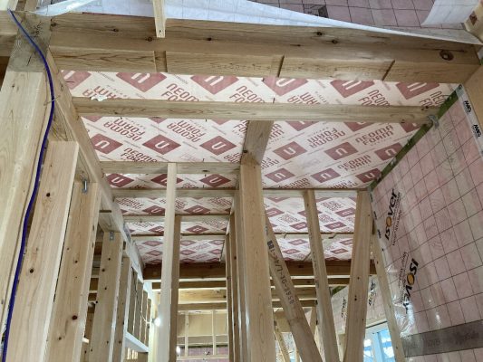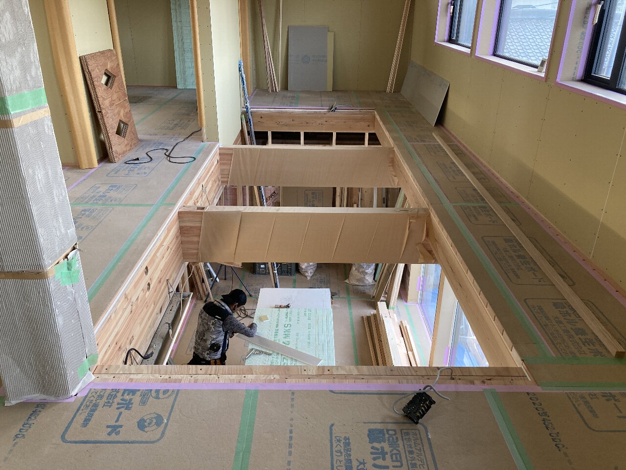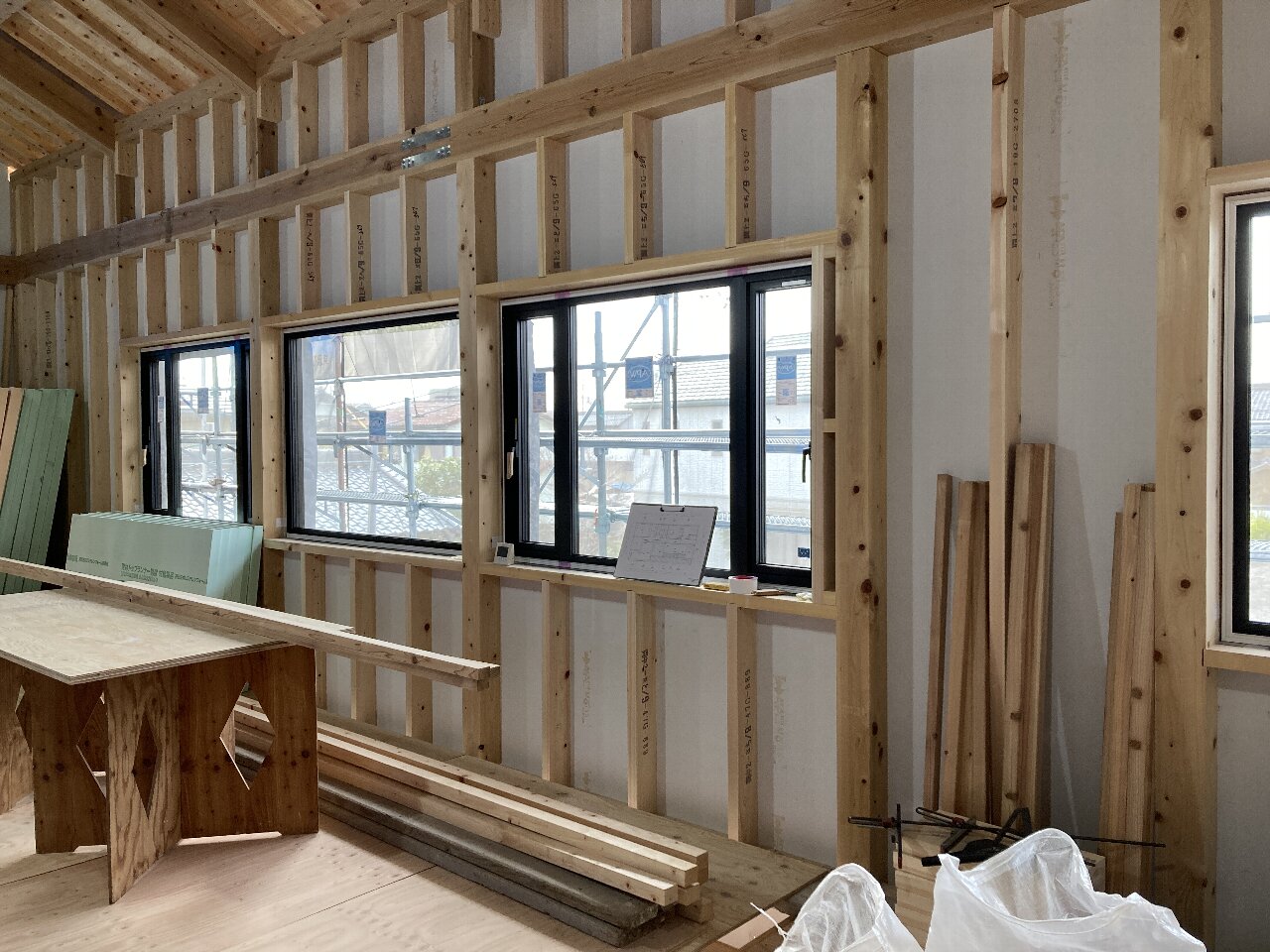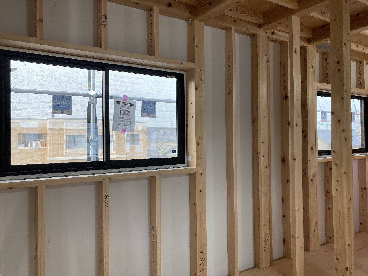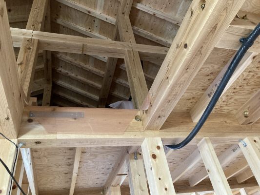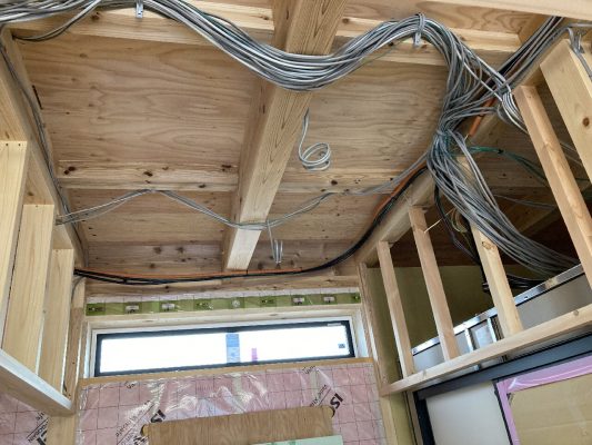 内部は、2階の開口部の下地も入れ終わっています。