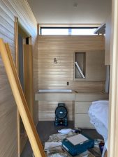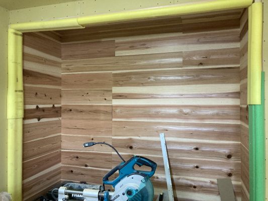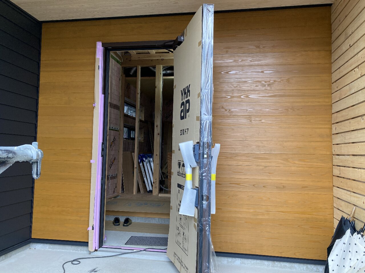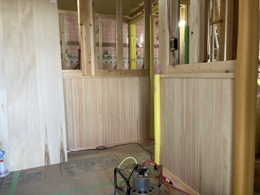 玄関は、桧の腰板が張られました。いい香りがします👍