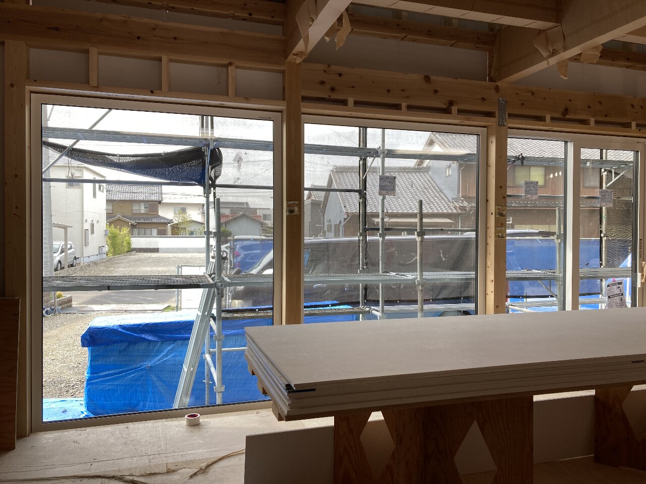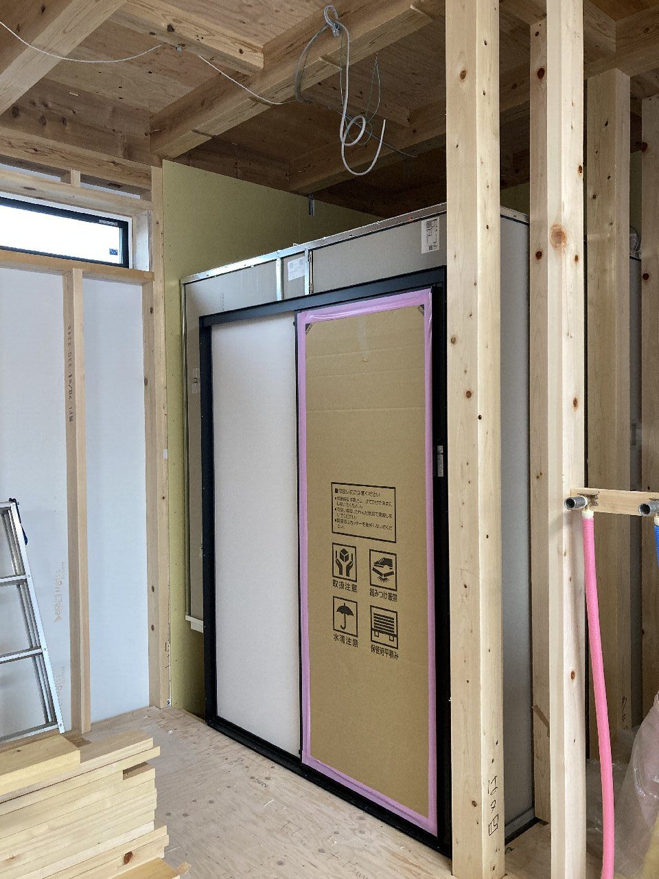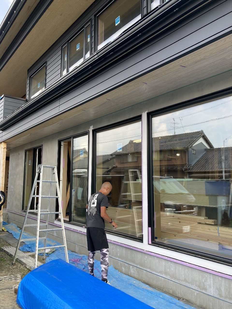 先日、s水所長、監督見習のo本君が手伝いに来て、5人でこの窓ガラスを納めたそうです💦💦今回はトリプルガラスの上、1650×2200の大きなFIXの窓!相当重たかったようです~お疲れ様でした。