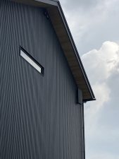 y江板金さんは、外壁のガルバリウム鋼板縦張り部分を張り終えました。残るは、正面の横張りです。横張は縦張りと違って納まりが難しいです💦どうやって納めようかと考え出すと眠れないそうです。この暑さと納まりで、y江板金さんの頭の中は沸騰中です。