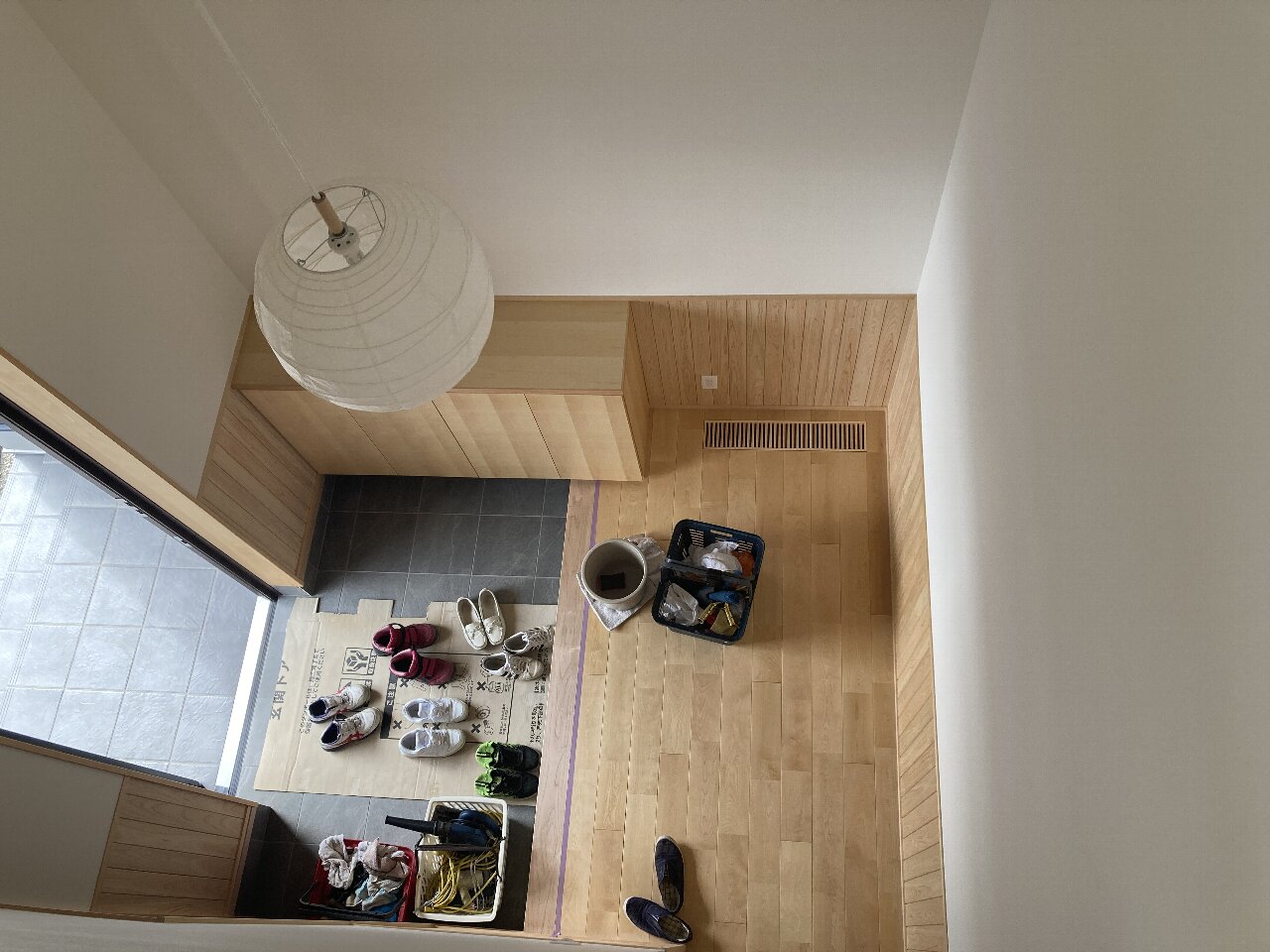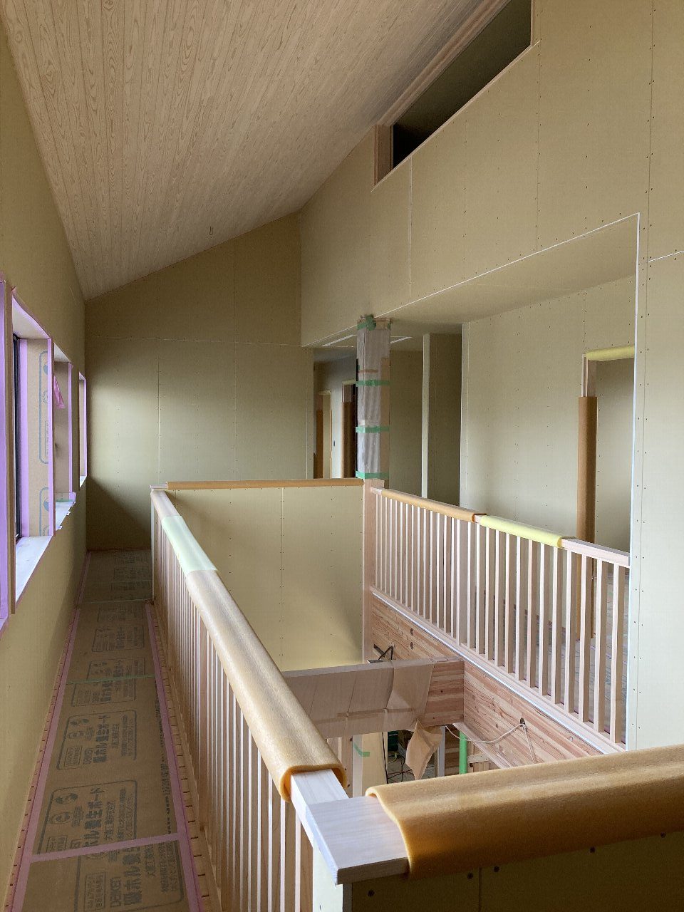 そして、今まで玄関上の吹抜けには、作業の為仮の床が張られていましたが、撤去され広々~とした空間になりました。