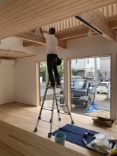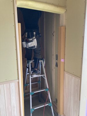 内部は、1階はf井電気のh場さんが配線工事をほぼ終えています。