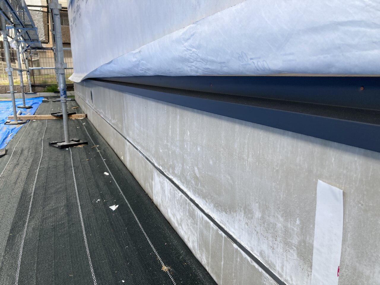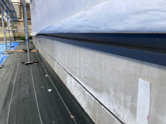 今日はバルコニー内部の水切りの取付を行っています。土台水切りは施工し終えています👍