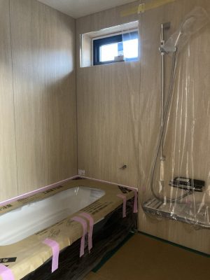 ユニットバスも予定通り26日に施工されました。今回はLIXILのアライズです。アクセントパネルではなく、全面同じ柄にされたのですね👍落ち着いていて良い感じです。