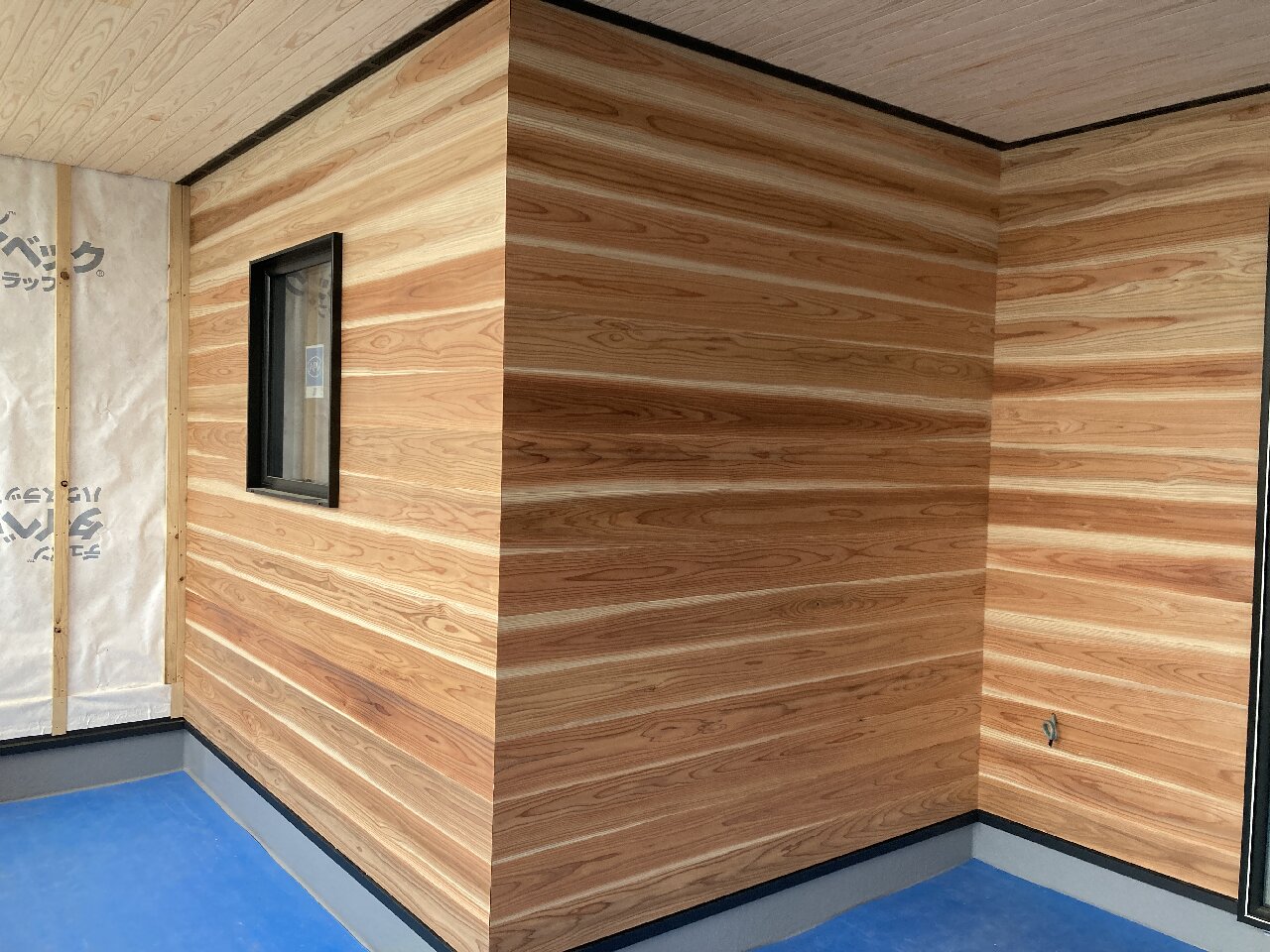 今回は(いや今回も)、羽目板張りが多いです💦n様のこだわらりを感じます。s井棟梁、室内や目にとまりやすい場所にはきれいな木目の羽目板を選んで張っています。軒先のちょっとしたスペースは首が痛くなるほど見上げないと見えない位置なので、色むらがある物を張っています👍