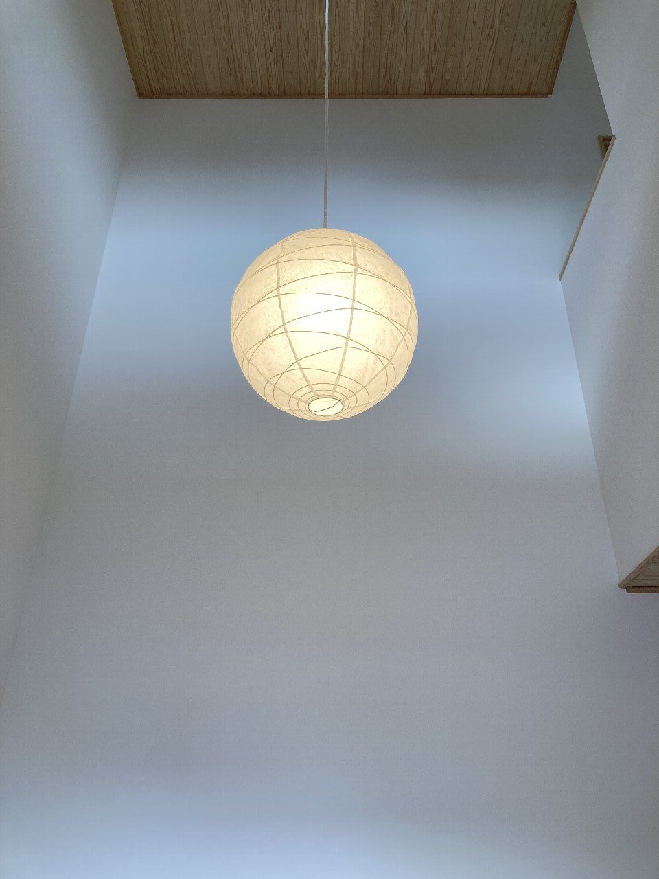 f場さんも、内部足場がある間にやってきた模様です。n様がお取り寄せされた照明器具も長さを調整して、玄関の吹き抜けに設置されました👍