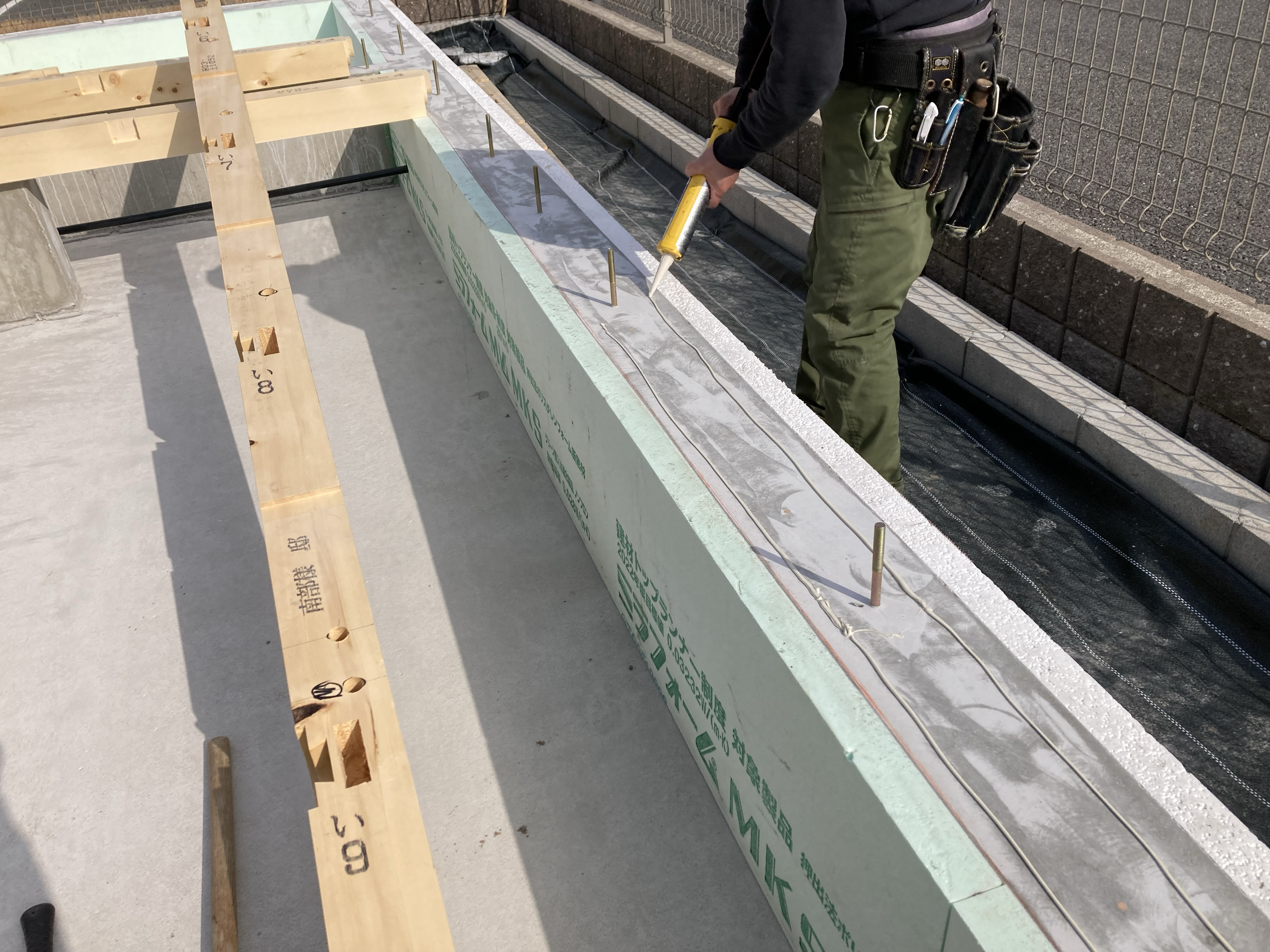 立上りの断熱材は内側(ミラフォーム厚み50㎜)、外側(パフォームガード厚み50㎜)両方に断熱材が敷設されています。