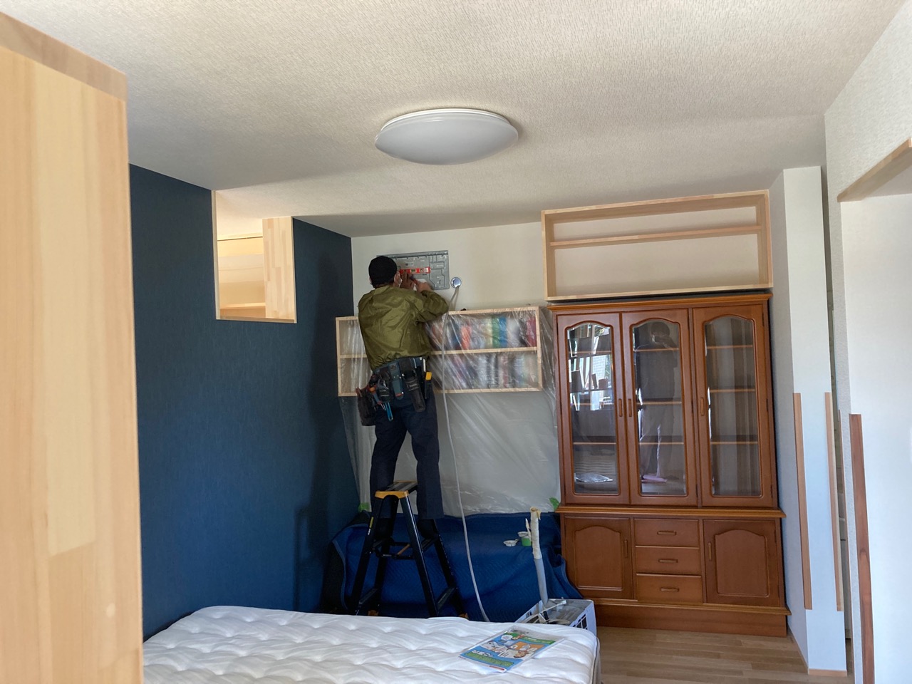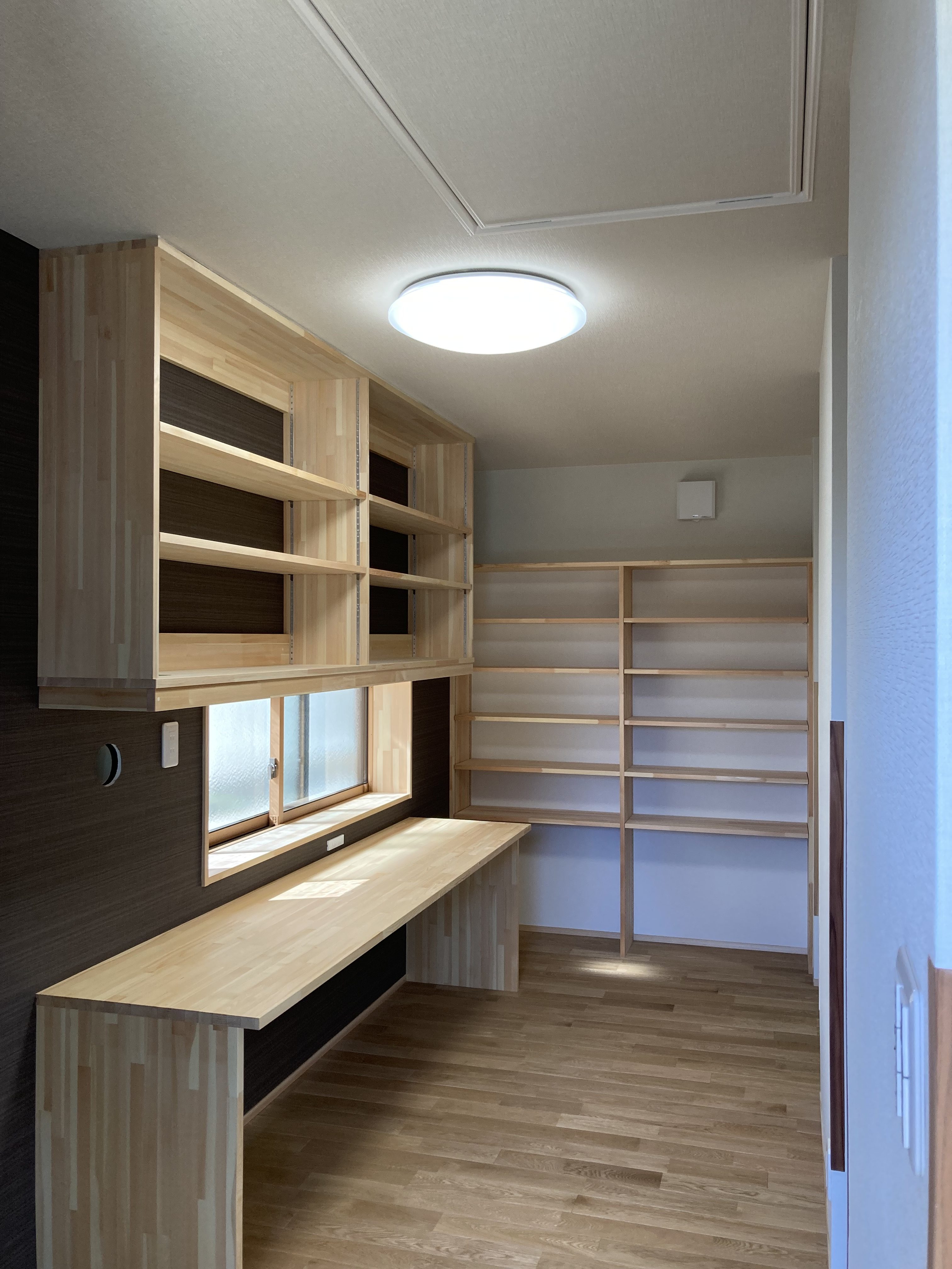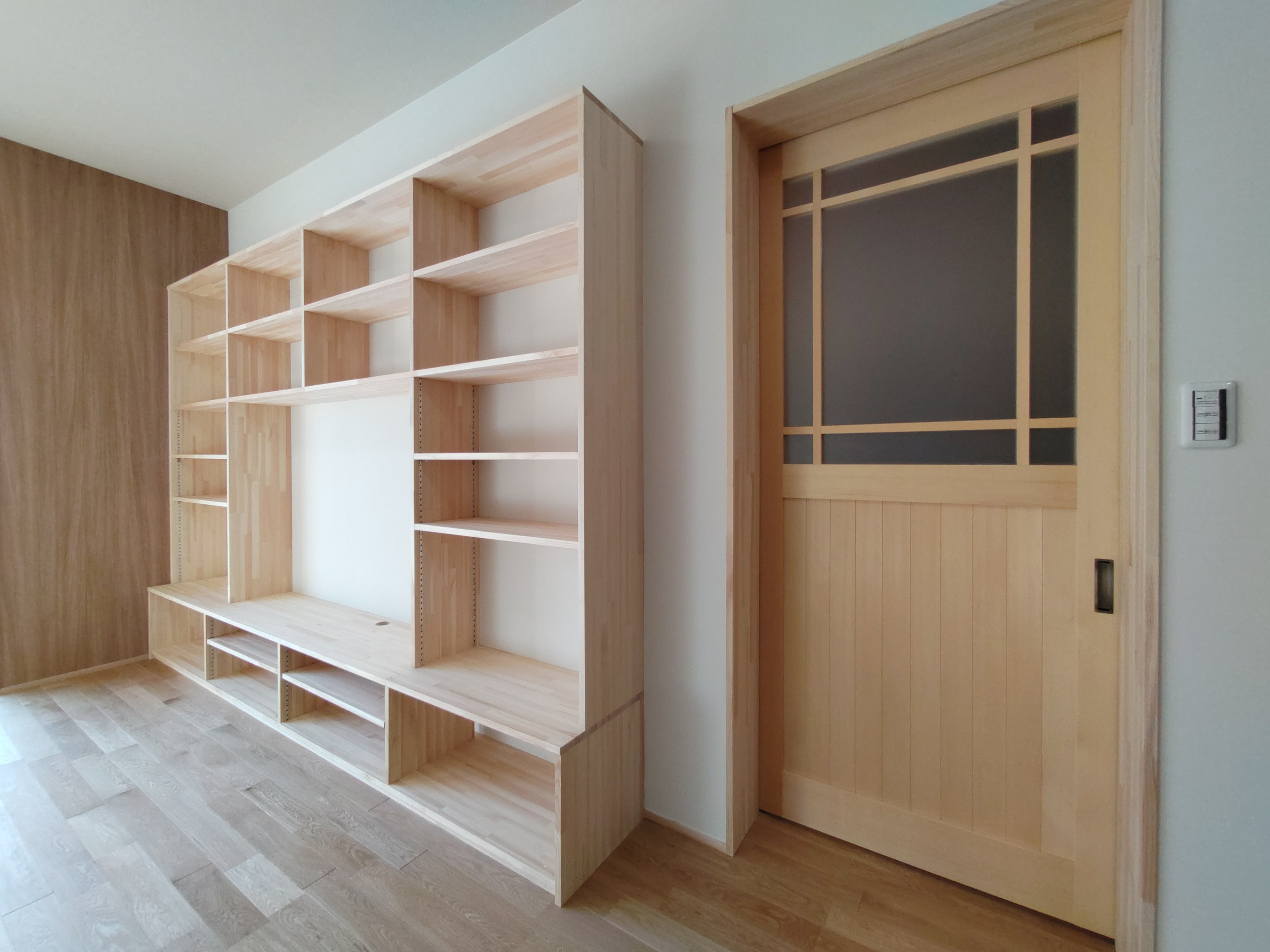 i様の作業のための部屋、元々は12畳ほどの広さがありますが、そのほとんどを収納陳列棚に使用します。空間としてはぜいたくな使い方かなと思いますがi様にとってはこれでもまだまだ足りないくらいです。