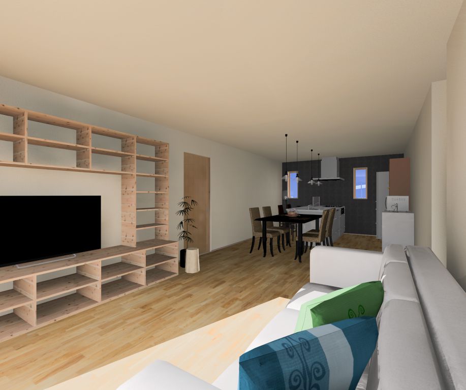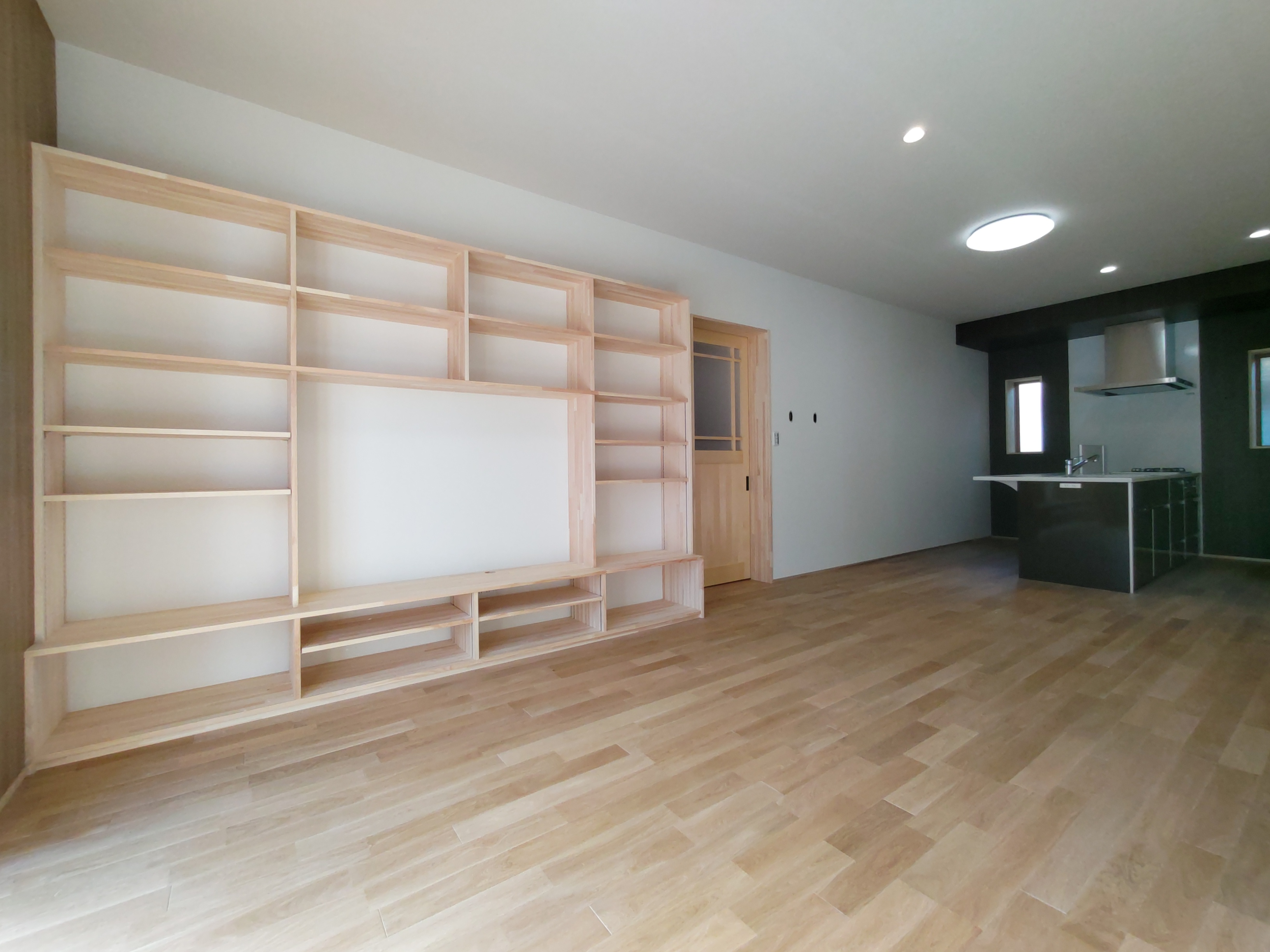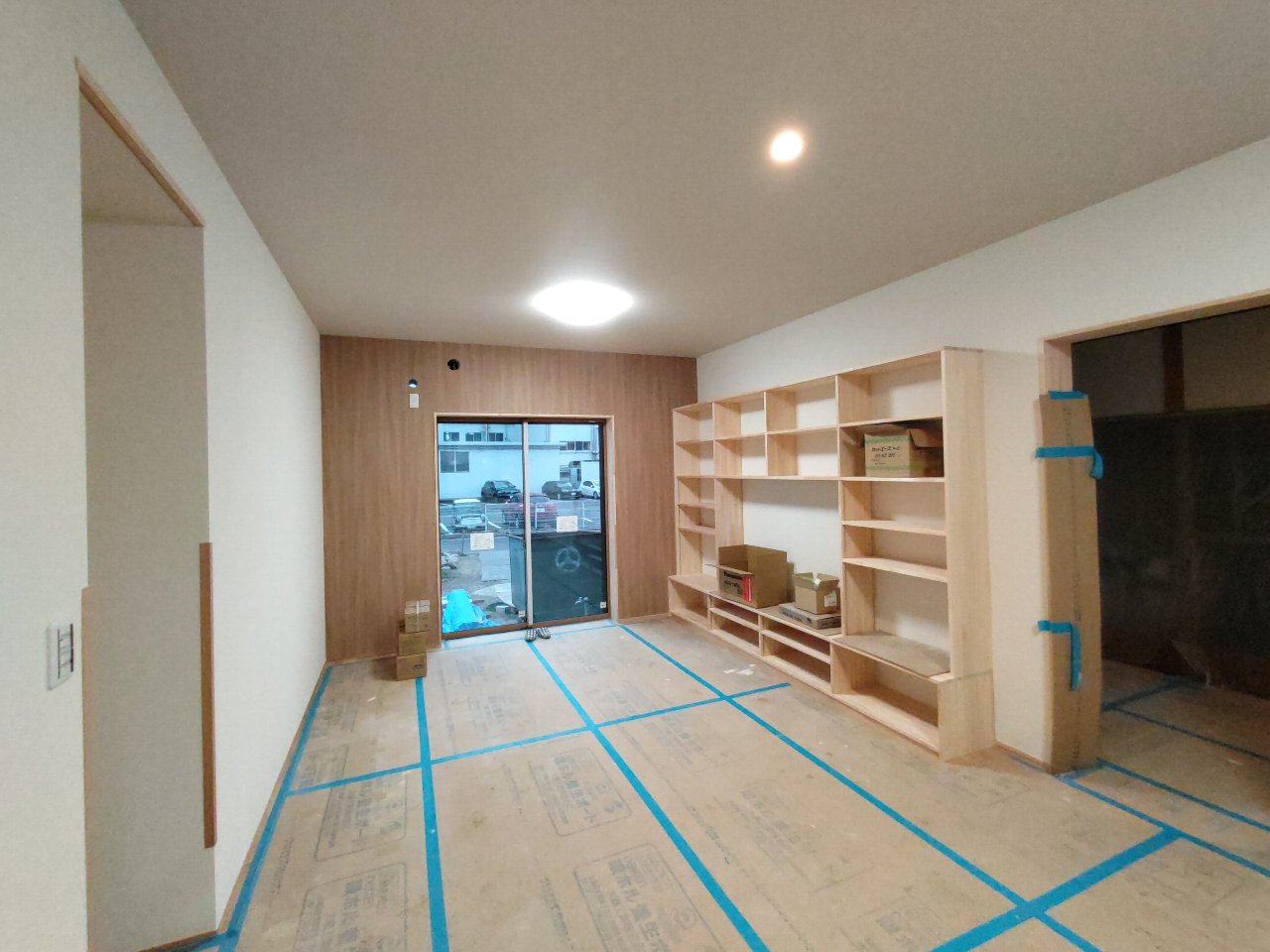 i様の作業のための部屋、元々は12畳ほどの広さがありますが、そのほとんどを収納陳列棚に使用します。空間としてはぜいたくな使い方かなと思いますがi様にとってはこれでもまだまだ足りないくらいです。