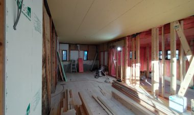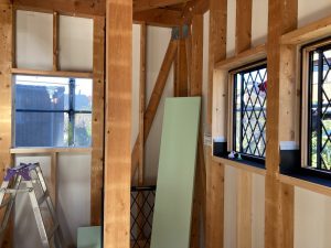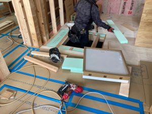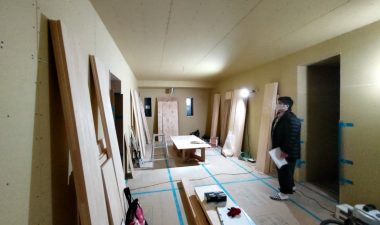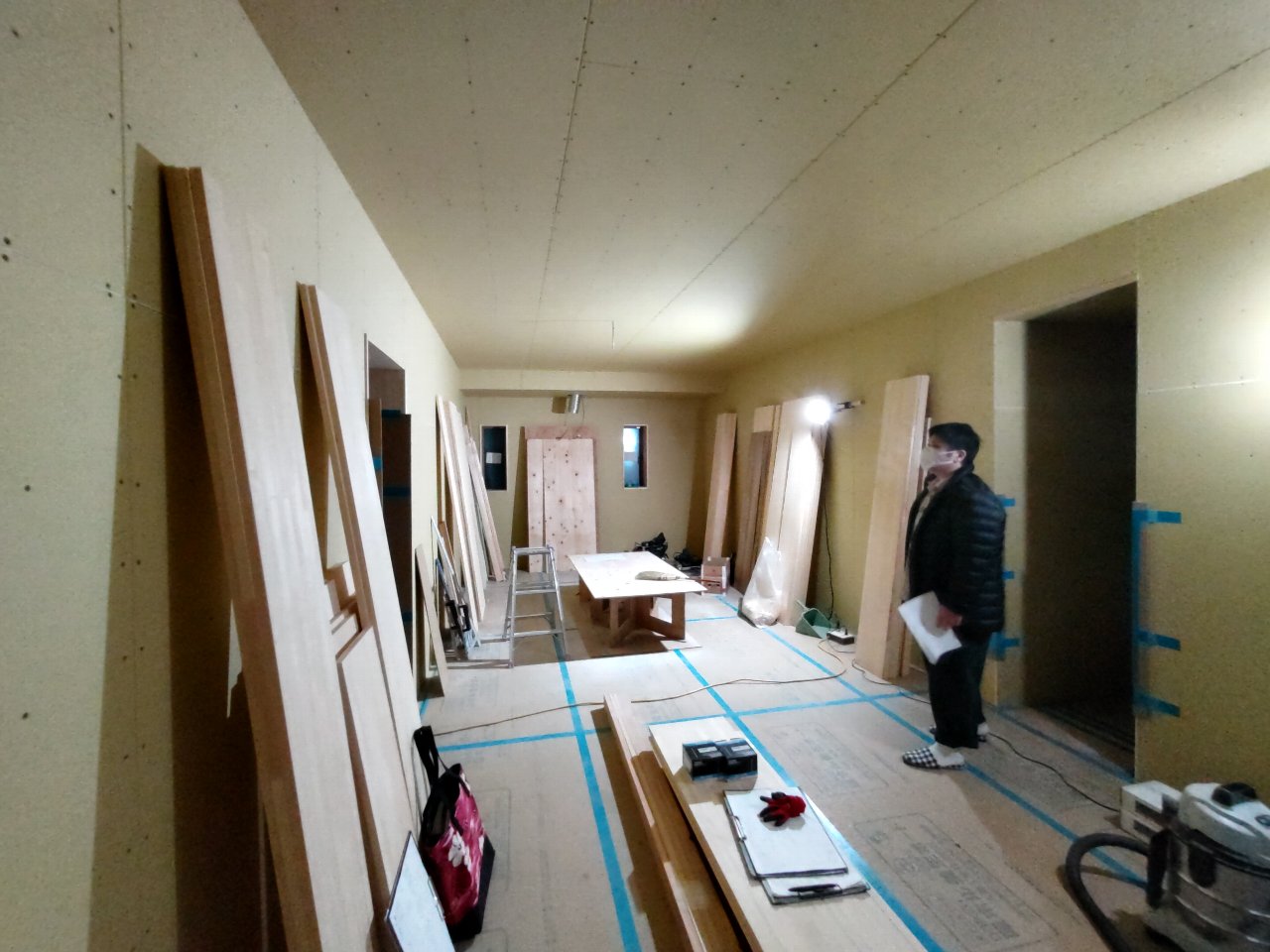 窓枠類の加工も終わり、現場にはめられて内装工事が進んでいきます。