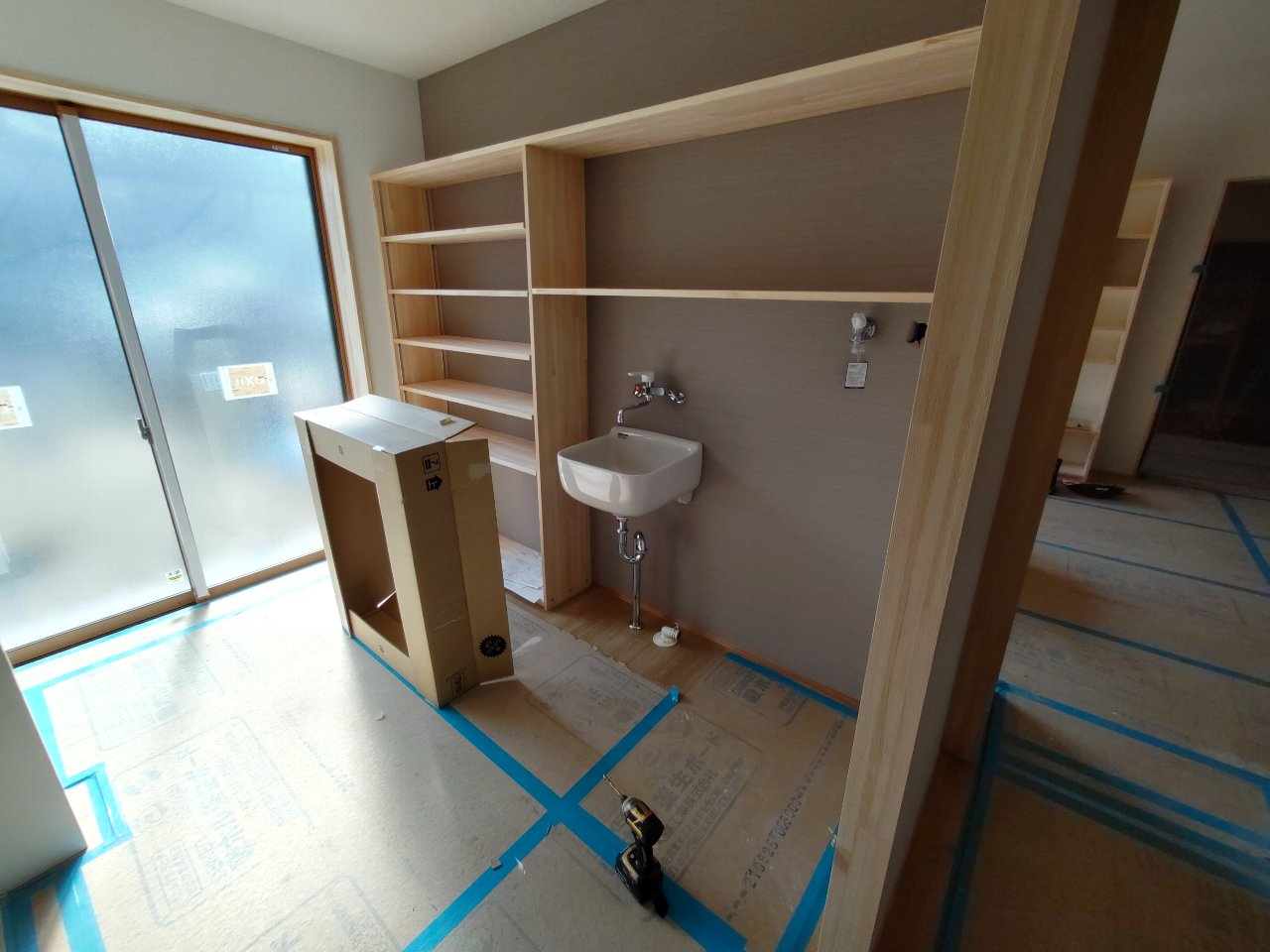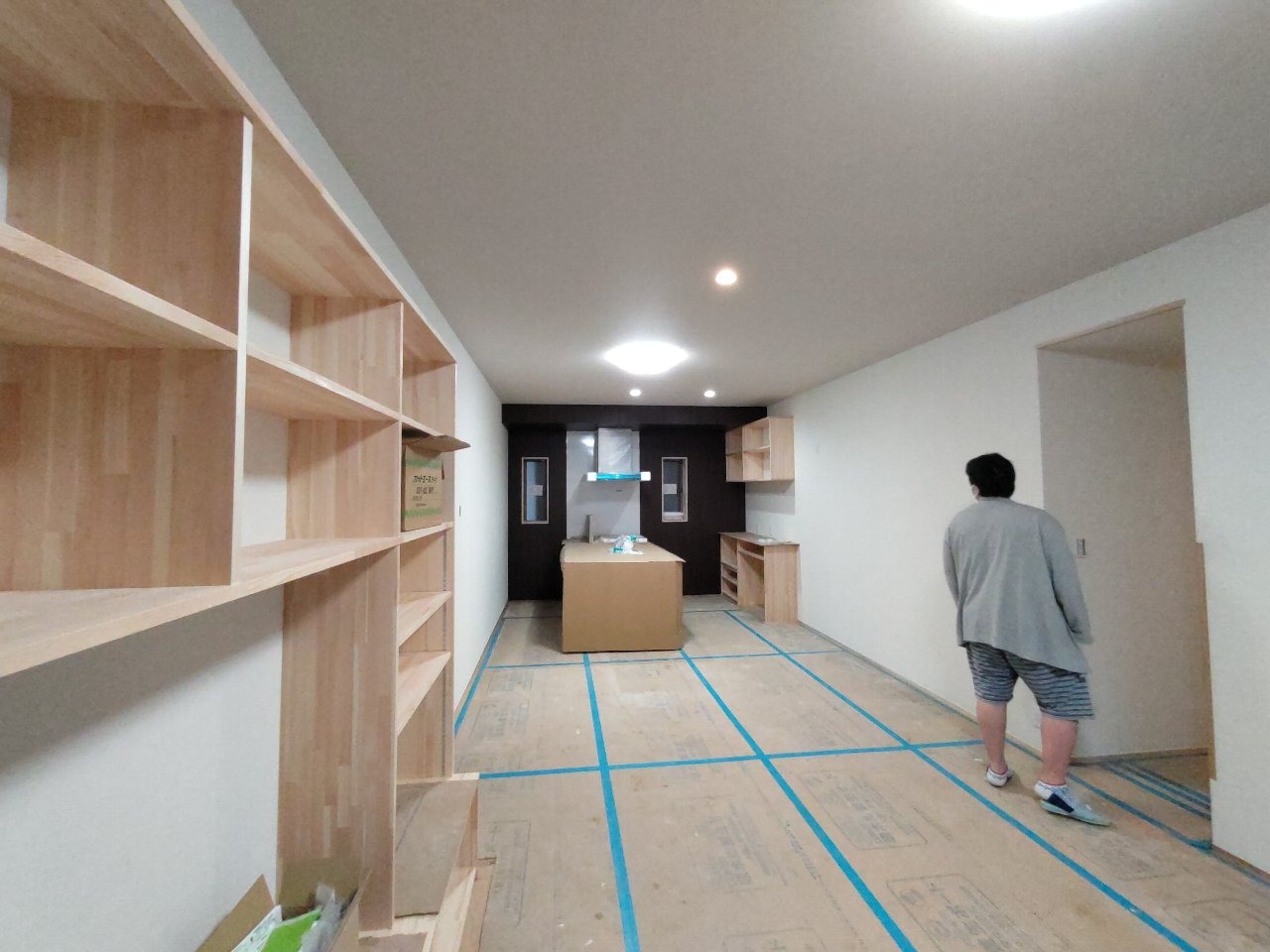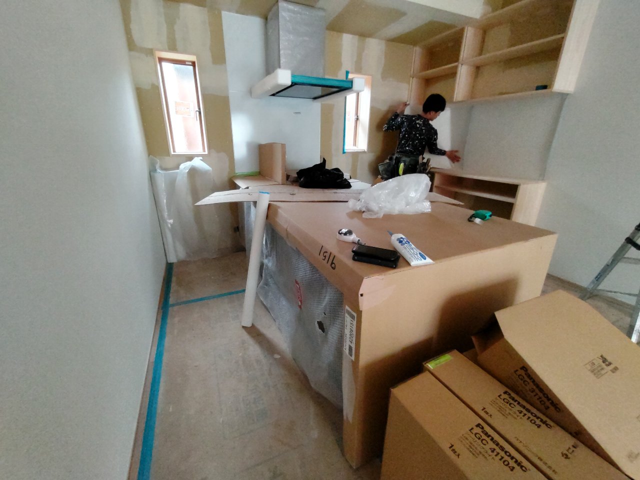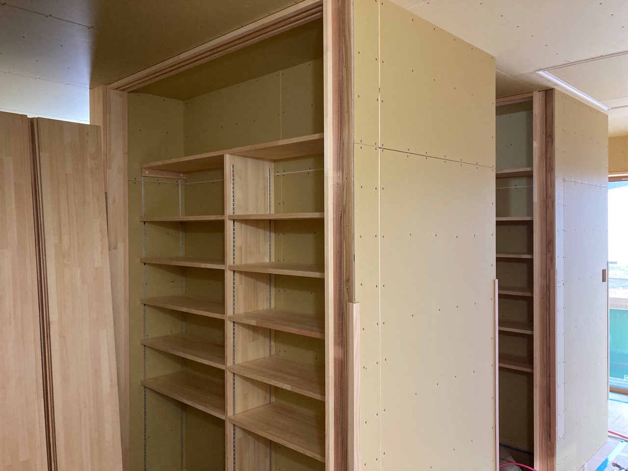 棟梁は各種棚板の組立取付中。だんだんと生活するための内装が整っていきます。